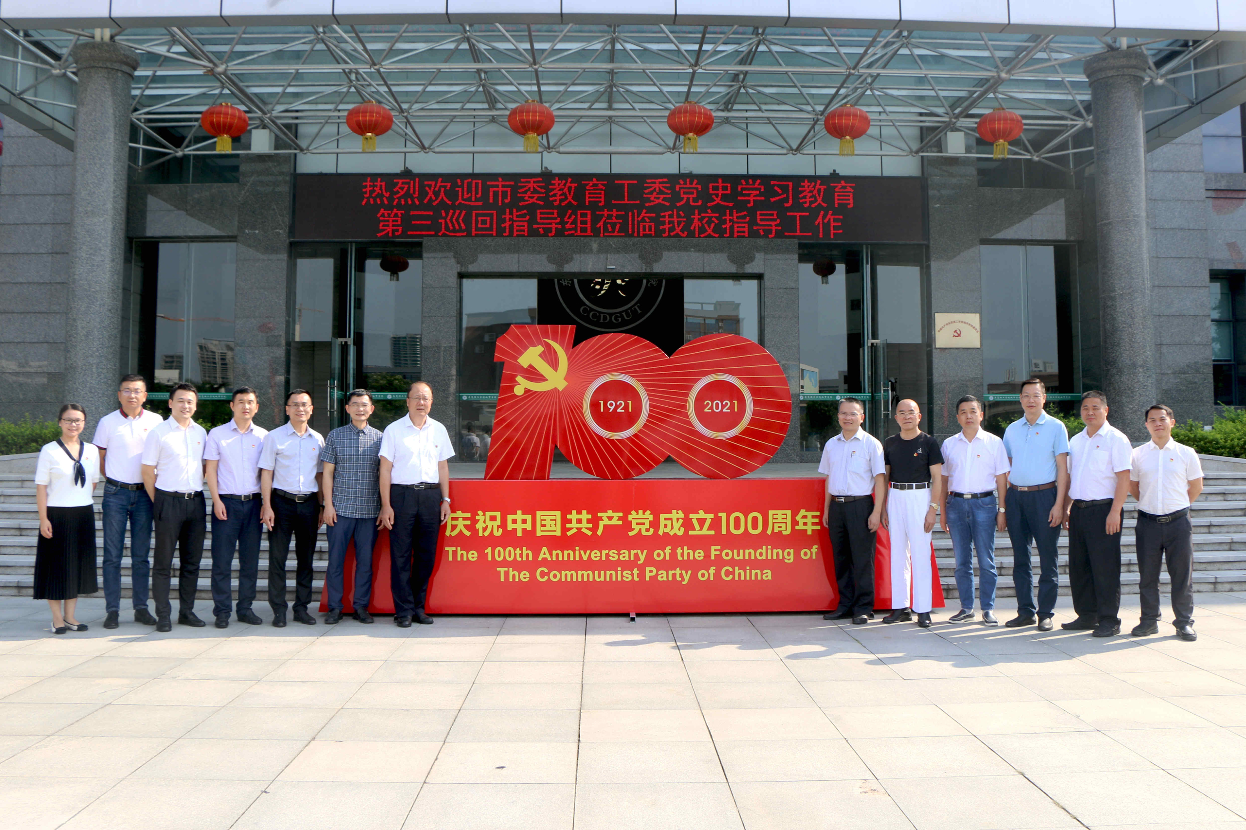 7月9日下午,东莞市委教育工委巡回指导组高校巡回指导第三组组长邓柏松,组员戚锐麟、叶德荣,联络员侯典国莅临beat365官网调研指导党史学习教育开展情况。学校董事会董事长代表陈超群,校党委章德胜、王卫平、高香林、黄兢、刘玉侠、杜
