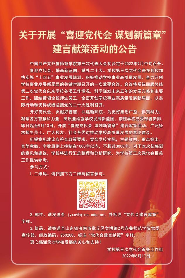 关于开展“喜迎党代会 谋划新篇章”建言献策活动的公告