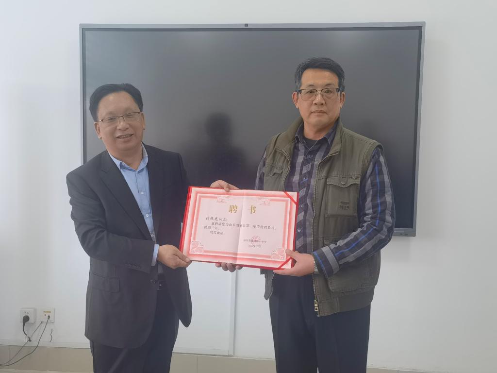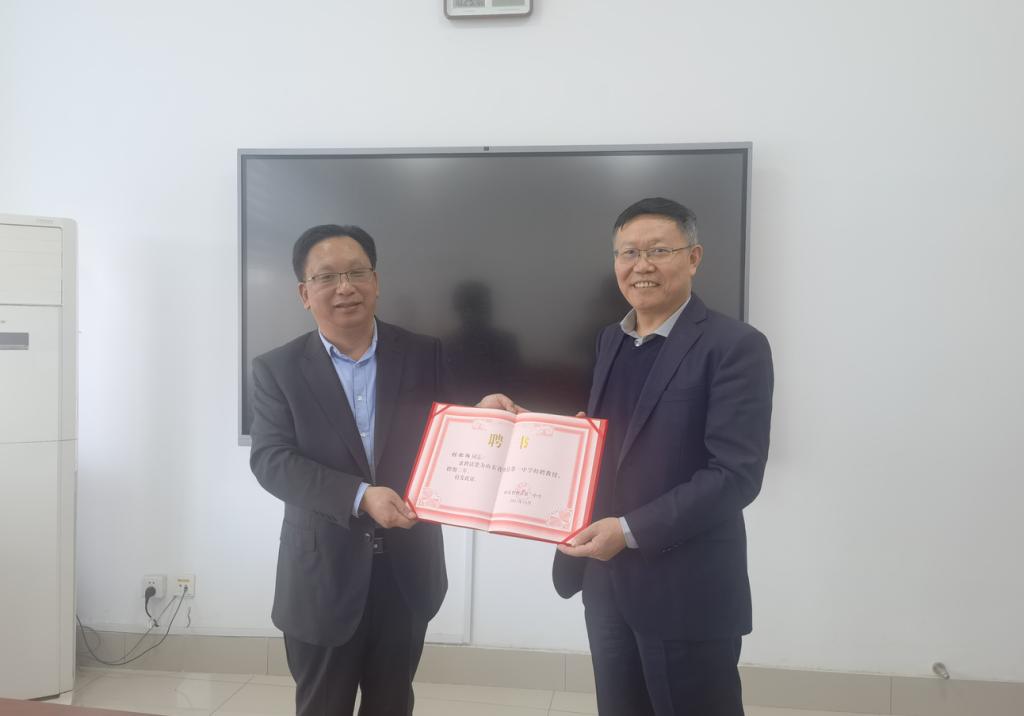 最后,双方举行签约及聘任仪式。林松柏、张振栋代表两校签署互建校外实践基地合作协议。曹县一中聘请林松柏、刘振光为“山东省曹县第一中学特聘教授”。