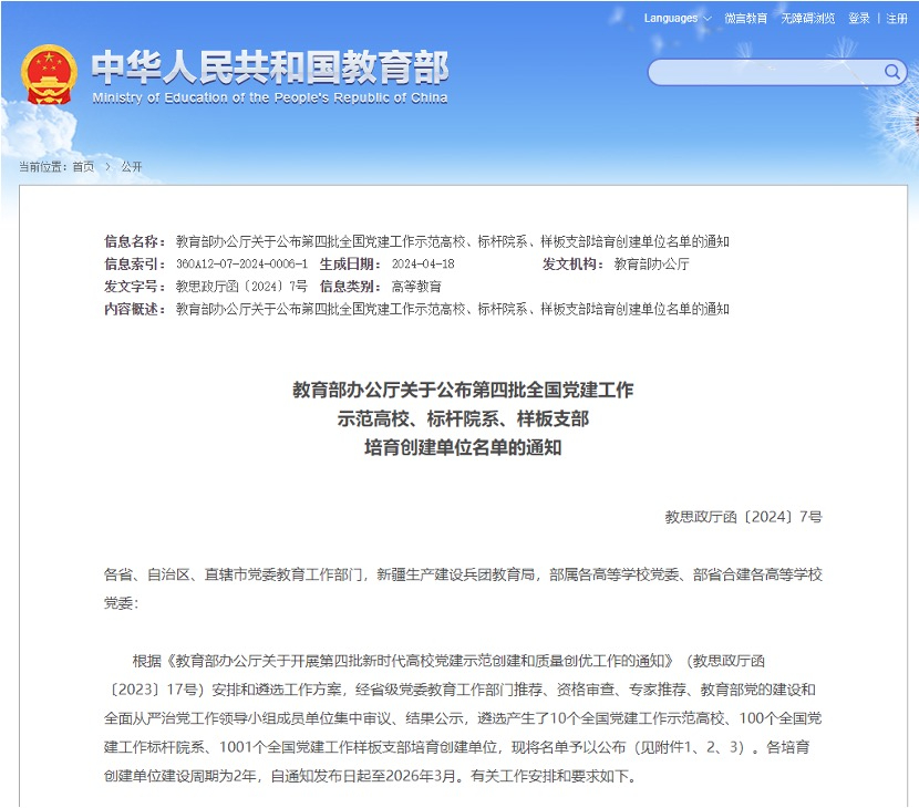 近日,教育部办公厅公布了第四批全国党建工作示范高校、标杆院系、样板支部培育创建单位名单。beat365官网商学院教工第一党支部(现为会计与金融学院教工第一党支部)入选全国党建工作样板支部培育创建单位,成为beat365官网第二个全国党建工