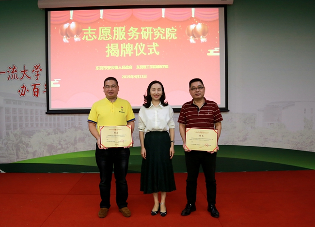 4月11日上午,由东莞市寮步镇政府与我院合作筹建的“志愿服务研究院”(以下简称“研究院”)启动暨揭牌仪式在行政楼隆重举行。