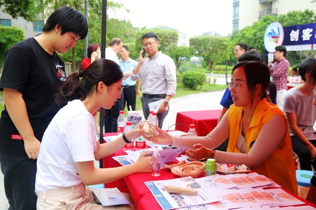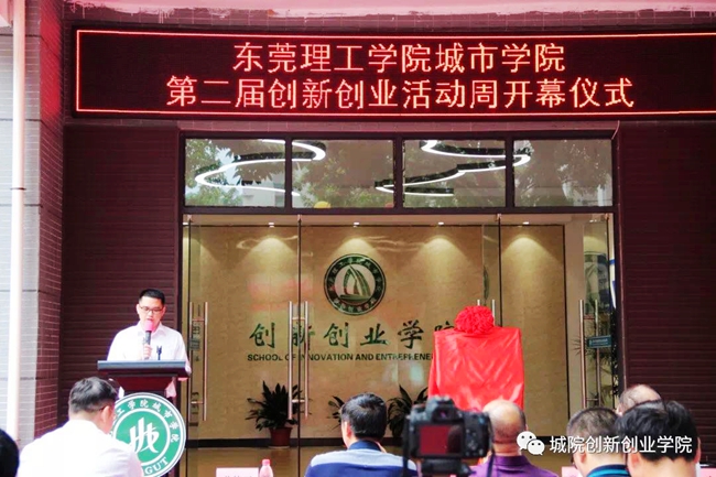 4月11日下午,第二届“双创”活动周暨大学生创业孵化基地成立两周年成果展开幕仪式在秋枫广场举行。活动由东莞市人力资源和社会保障局寮步分局和我院联合举办,并获得了东莞市科技企业孵化协会、东莞市蚁巢科技企业孵化器有限公司的大力支持。