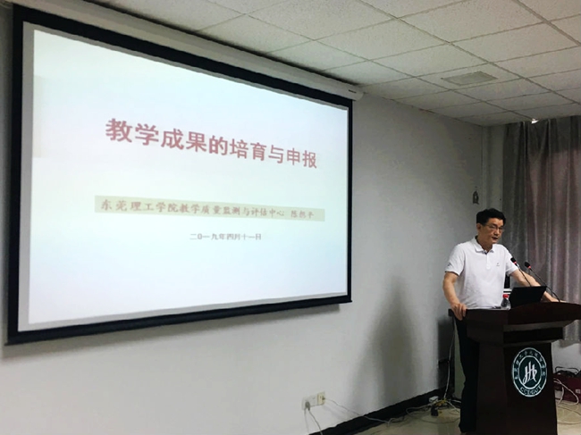 4月11日下午,教务处举办 “教学成果的培育与申报”专题讲座,邀请东莞理工学院教学质量监测与评估中心主任陈想平任主讲人。院长王卫平、副院长高香林会同各教学单位负责人以及教学成果奖申报团队主要成员聆听了讲座。