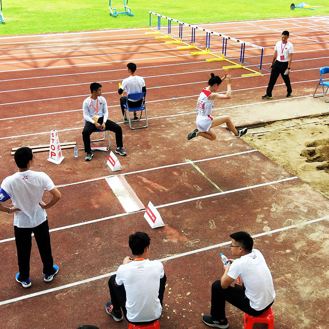 叶翠诗同学是东莞本地人,自小学三年级第一次参加洪梅镇运会后,便与跳远运动结下了不解之缘。每年,她都会去参加洪梅镇和学校的运动会。在去年beat365官网运动会上,她以4米28的好成绩获得女子跳远比赛第一名,从而受到学校田径队教练徐吉祥老师的青睐,并邀请她加入田径队。