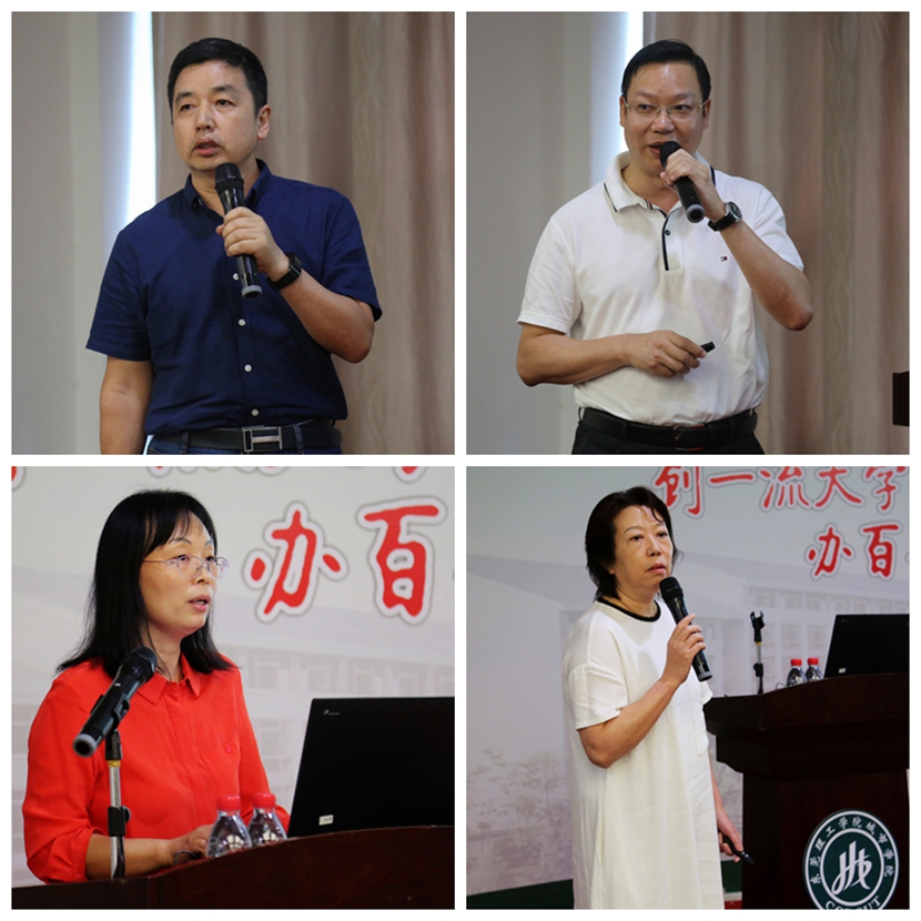 校领导章德胜、高香林、黄兢、周庆、刘玉侠分别向大会作了工作述职报告,就各自分管业务和部门2018-2019学年工作情况、存在的不足和下学年工作思路、目标与方向进行了汇报。