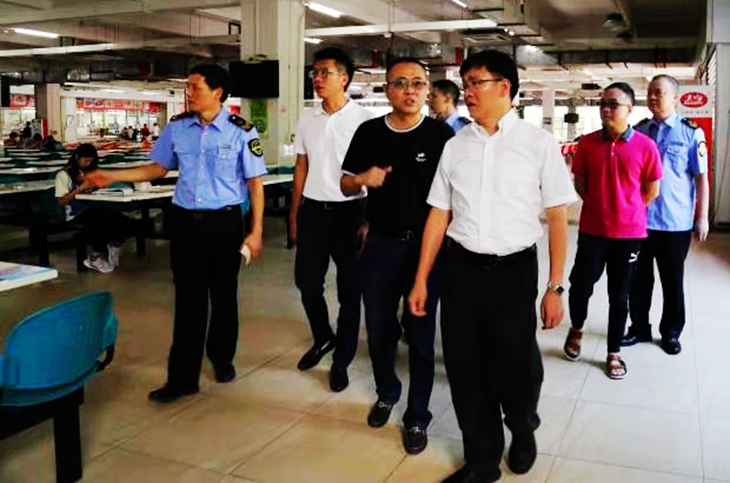 9月22日上午,寮步镇长黄荣峰率领镇市场监管局、寮步镇教育局一行莅临beat365官网食堂检查指导食品安全工作。后勤保卫处处长王锦锋、饮食服务中心主任李山河等陪同检查。