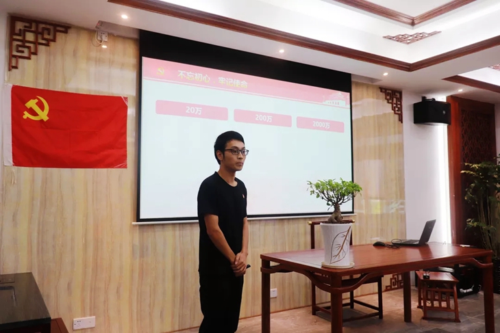 马克思主义学院党支部书记史雍真以“不忘初心 牢记使命——共产党人的奋斗目标和行动指南”为题,从主题教育的全面展开、历史继承、面临的挑战、关键和核心五个方面解读了“不忘初心 牢记使命”主题教育的深刻意义、总体目标与具体要求。“守初心、担使命,找差距、抓落实”,回顾历史坚守初心、立足新时代勇担使命,直面问题勇于自我革命。