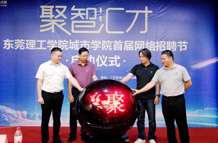 与会领导共同按下“聚智汇才”启动球,为本届网络招聘节揭开序幕。