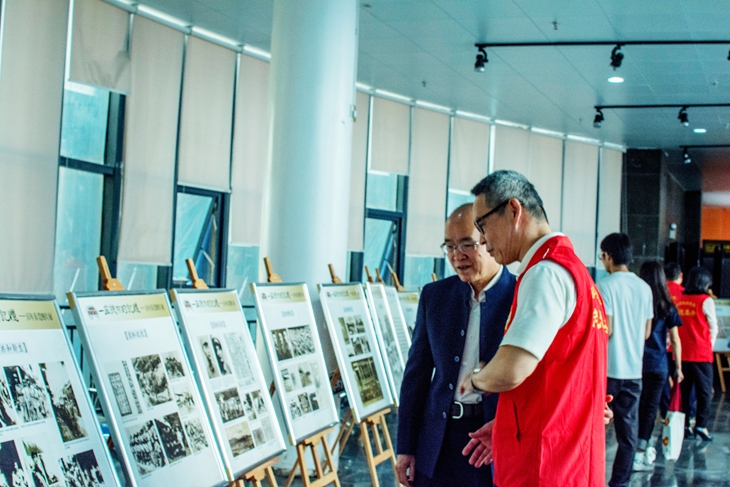 一张照片,一段历史,一个故事,一座独特的城市。10月25日,beat365官网文传学院党总支在学校图书馆大厅举办“不忘初心,牢记使命”主题教育学习展览——《一座城市的记忆,百年东莞图片展》。东莞市档案馆馆长连希波、副馆长林俊强,校长王卫平,文传学院党总支书记宋秋敏和学生共同观摩展览。