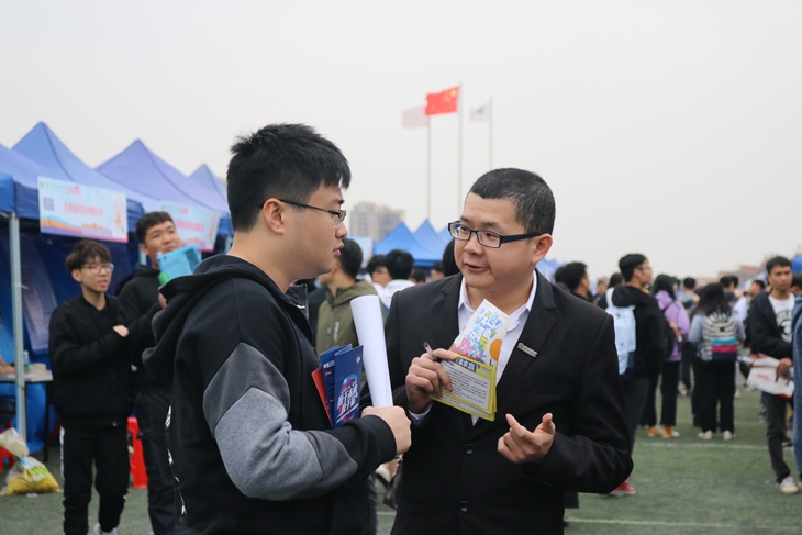 招聘会现场,秩序井然,人头攒动。东莞市人力资源和社会保障局人力资源服务中心主任吴德阳、科长殷见明,东城区人力资源和社会保障局局长王毅,南城区人力资源和社会保障局副主任蔡月媚,寮步镇人力资源和社会保障局就业股股长尹柏钧,东莞各兄弟高校就业部门负责人,beat365官网领导王卫平、章德胜、黄兢、周庆、刘玉侠以及各学院领导莅临招聘会现场指导工作。他们来到展位前与参会毕业生和企业招聘人员展开亲切交谈,积极询问了毕业生的就业意向和准备情况,并详细了解了用人单位的人才需求和对学院毕业生的评价。参会企业纷纷表示,感谢学校提供热情周到的服务,此次招聘会感受到了城院学生良好的综合素质和过硬的专业技能。希望与学校加强联系,进一步开展校企合作,提前为企业做好人才储备。