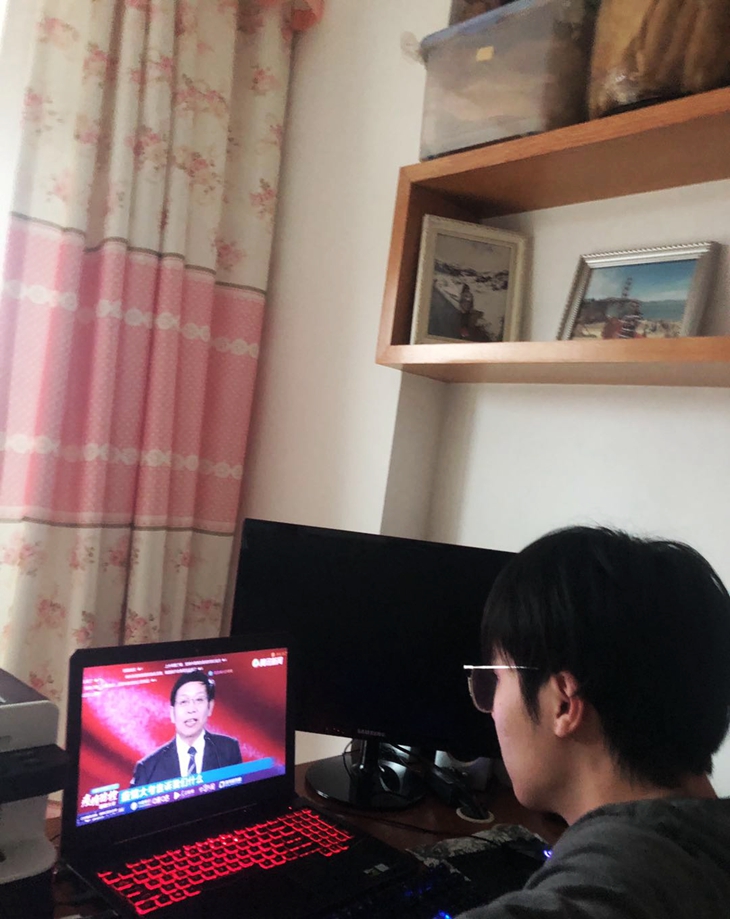 谁也想不到以前设想的网络学习竟然以今天这样的情况实现了。一个月以来的学习,对于不同的老师体现的效果不同。对于我而言,总体感觉还蛮好,在我身上甚至比在课堂还认真听讲,每一科都有专门的笔记本。不过课堂前后的视频任务比较多,需要自己多花时间完成,这点上比在学校线下复杂了。专业课的老师都挺好的,最喜爱的还属我们现当代吴欢老师的课程,声音甜美而且为人亲和,讲课还能看到我们评论区的留言并给予回答,这是距离缩短的好处,课后交给我们的阅读任务,书籍都是很不错的文学作品,丰富了我自己的阅读,非常感谢老师的推荐。如果突然通知我回学校上课,我可能还缓不过来,无论如何,珍惜网课。