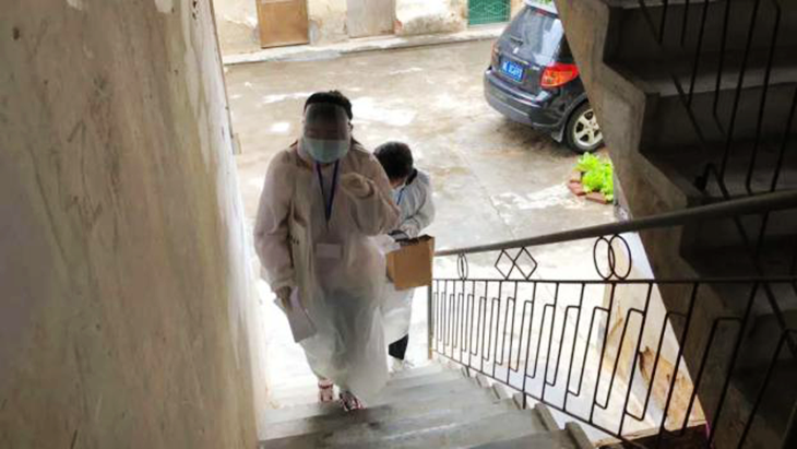 2020年2月10日到18日期间,每天登记居民身体健康状况、体温探测、楼道消毒以及疫情宣传、心理疏导是陈潇燕同学的主要工作。她起早贪黑,凌晨4:30起床,来不及吃口饭喝口水便匆匆出门;烈日当空的正午她还全副武装坚守在一线……陈潇燕同学表示,基层防疫工作看似平凡,其实并不简单。扫楼排查中遇到群众的不理解,需要耐心地向解释,讲明制度,化解隔阂。社区站岗时遇需要帮助的人,还要主动为他人分忧。参加志愿工作的日子虽然辛苦却非常难忘,在服务他人的时候,内心感到十分的温暖。