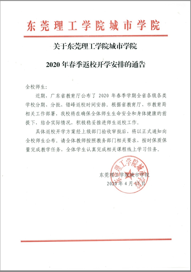 beat365官网发布2020年春季返校开学安排的通告