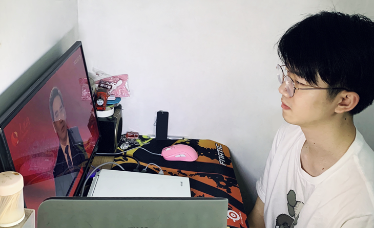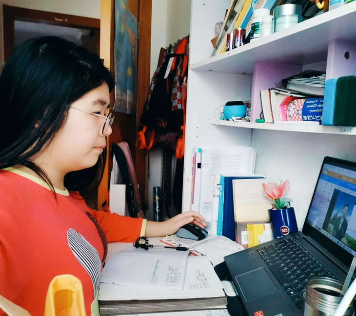 在家上课,我们自由自在。怎样能提高线上课堂的学习效率呢?我们紧跟老师的节奏,或在弹幕里提出疑问与老师互动,或在课后发现疑难之处再打开直播回放解答,企业微信把我们和老师的距离拉近,我们有问,老师必答,妈妈再也不用担心我下课有问题找不到老师了。但是,这也同时是网速与时间的竞争。线上学习的时间有限,有些老师会加快语速,但是,若是网卡或网掉了,我们就仿佛被遗弃到九霄云外。所以,线上学习有趣但不完美,我们更加珍惜校园的学习和生活。