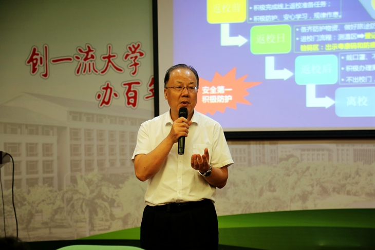 后勤保卫处蔡小锋副处长针对学生返校后的快递物流、饮食、宿舍管理等方面工作作了补充。