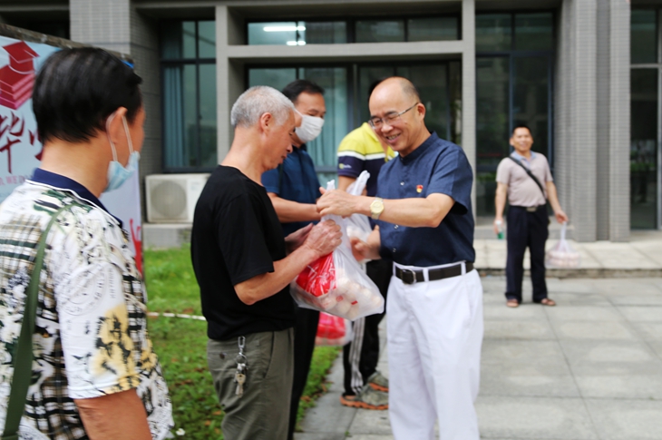 5月26日,王卫平校长在后勤保卫处副处长蔡小锋、刘维仝,组织部副部长卢淑芳的陪同下来到疫情防控一线,慰问后勤员工。