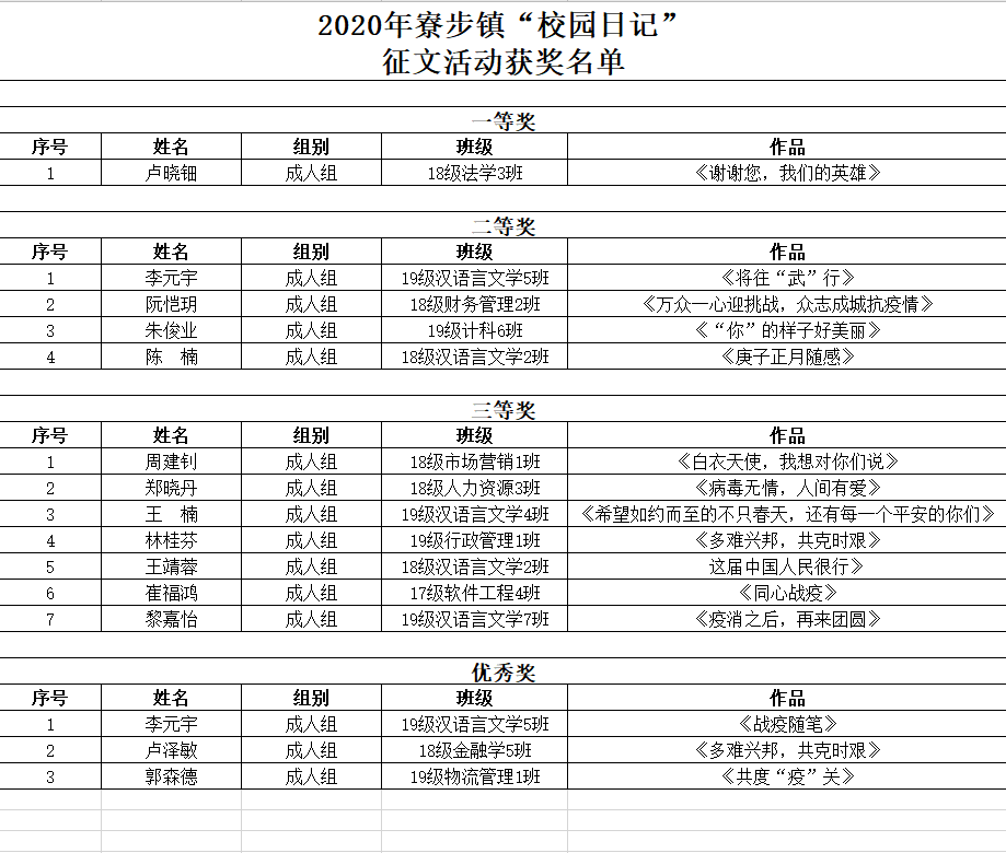 2020年5月,为了及时记录疫情下学生群体生活的真实面貌,展现寮步镇学生群体疫情下复学前后、校园内外日常生活的精彩故事与正能量,寮步镇文学艺术界联合会、寮步镇文化广播电视服务中心和寮步镇教育管理中心联合主办了2020年寮步镇“校园日记”征文活动。