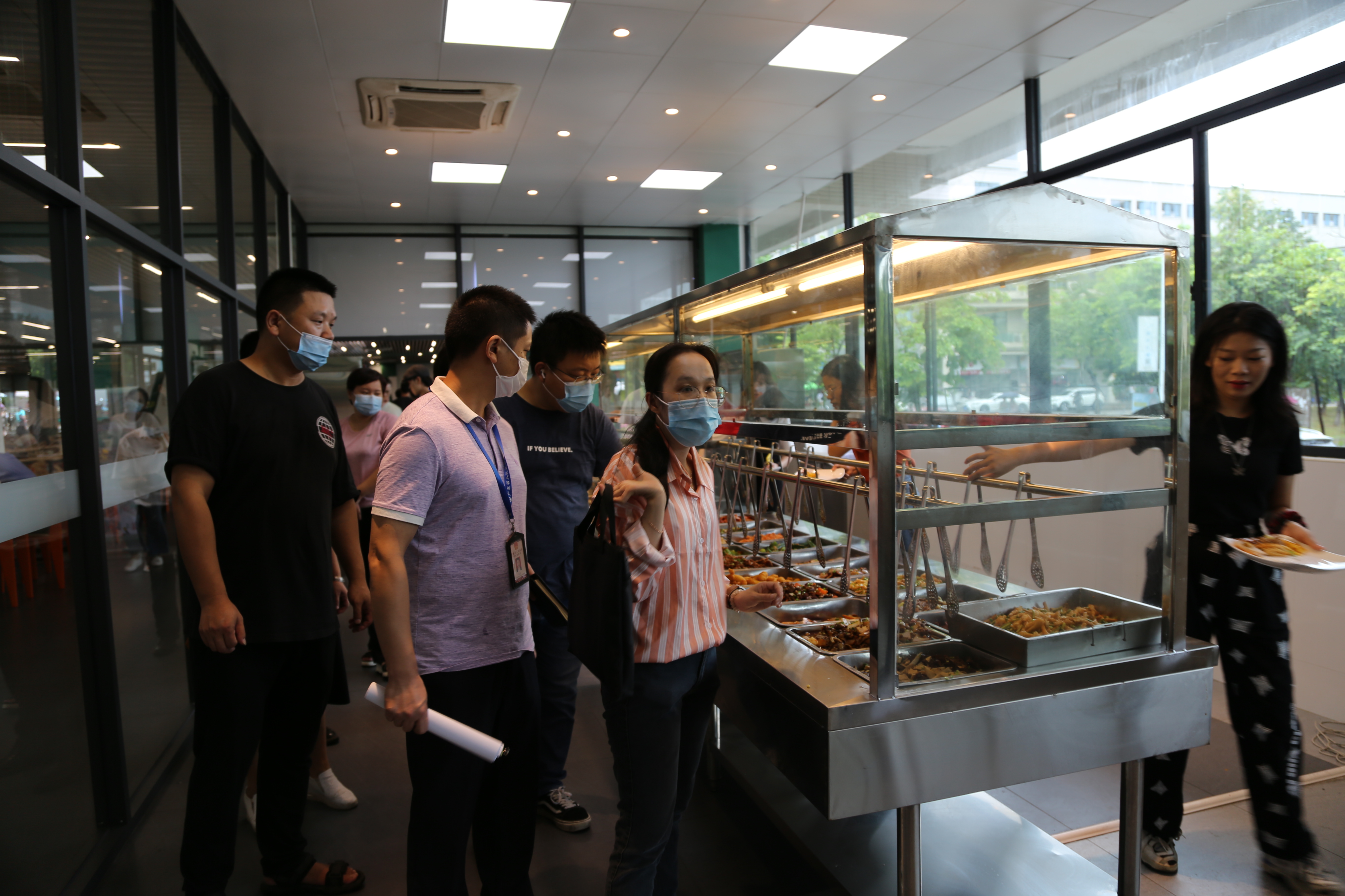 复学伊始,为进一步加强beat365官网食品安全管理工作,确保学校食堂经营规范有序,将疫情背景下高校食堂食品安全做好做实。9月8日,寮步镇市场监督管理局协同寮步镇教育局等同志,对beat365官网学生食堂进行食品安全联合检查,校长王卫平、鸿发教育投资集团副总经理李奎山及后勤保卫处、食堂相关负责人陪同检查。