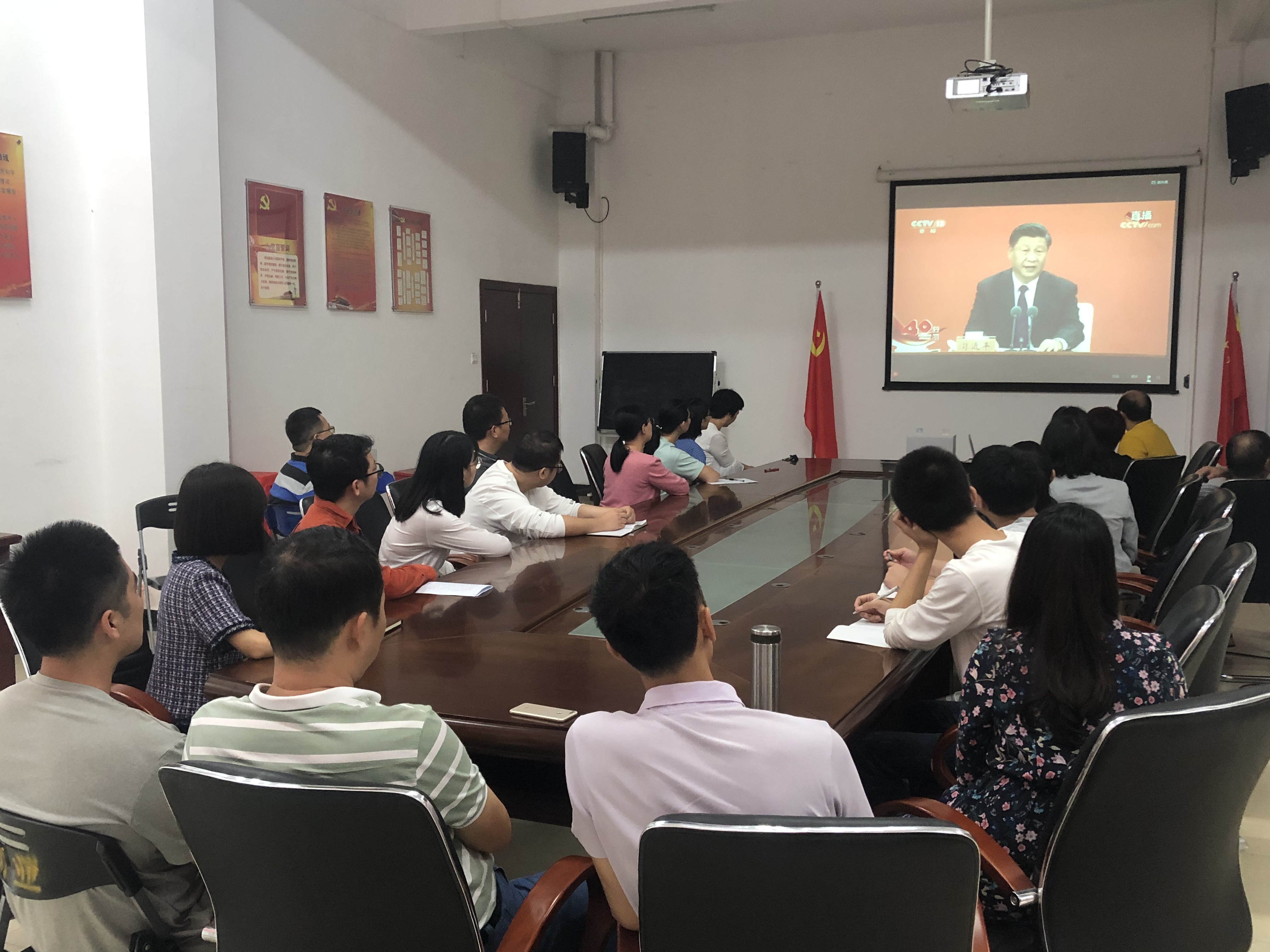 会议上,学校党员领导干部全体起立,随着会议进程唱国歌。在认真观看习近平总书记讲话直播时,大家仔细听,认真记。大会结束后大家纷纷表示,要以习近平总书记重要讲话为指导,继续坚定不移走改革开放的道路,弘扬”特区精神”,奋勇拼搏。大家表示作为高校教育工作者,以立德树人为根本,培育和践行社会主义核心价值观,深化中国特色社会主义和中国梦宣传教育,教育引导广大干部群众特别是青少年坚定中国特色社会主义道路自信、理论自信、制度自信、文化自信。在课堂内外,要大力弘扬以爱国主义为核心的民族精神和以改革创新为核心的时代精神,深入贯彻落实习近平总书记关于“发展是第一要务,人才是第一资源,创新是第一动力”的重要论述,要坚持以教学为中心,以教学促科研,不断培养适应广东经济发展、粤港澳大湾区建设所需要的基础知识扎实,实践能力强,具有创新、创业精神的高素质应用型人才。