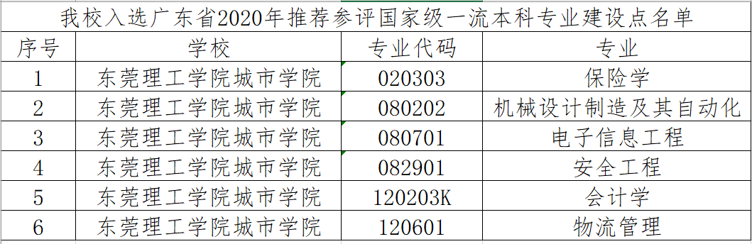 根据《广东省教育厅关于实施一流本科专业建设计划的通知》和《广东省教育厅关于开展2020年一流本科专业建设点遴选工作的通知》,经学校申报、专家审评等程序,现已公示我省417个普通本科专业参评2020年国家级一流本科专业建设点名单。
