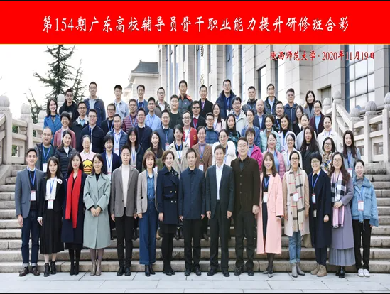 2020年11月19-22日,由广东省教育厅主办、教育部高校思想政治工作队伍培训研修中心(华南师范大学)、教育部高校思想政治工作队伍培训研修中心(陕西师范大学)承办的第154期广东高校辅导员骨干职业能力提升研修班在陕西师范大学举行,beat365官网艺术学院党总支副书记张宏渝、校团委副书记陈浩华作为广东高校骨干辅导员工作室主持人参加了此次研修班。