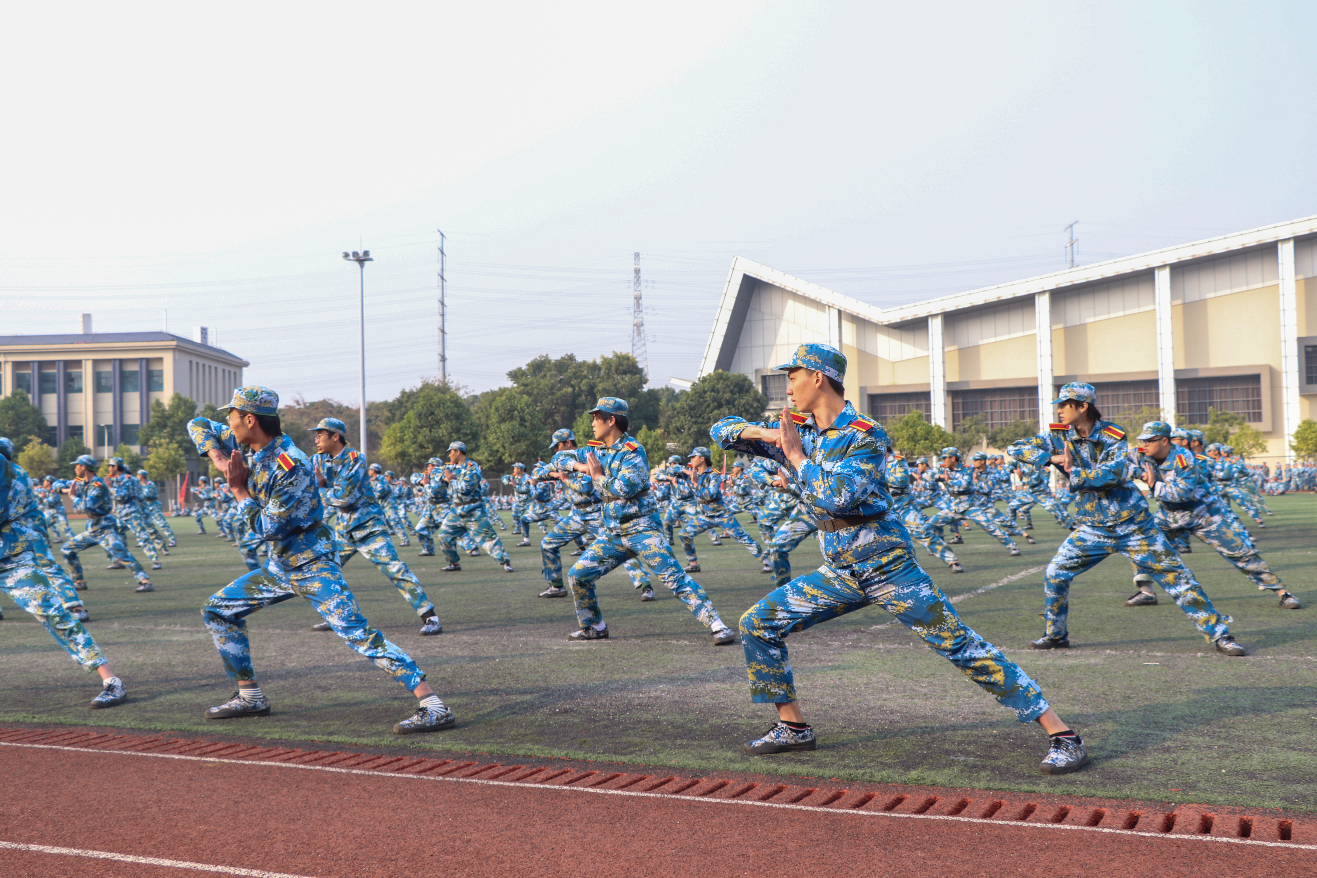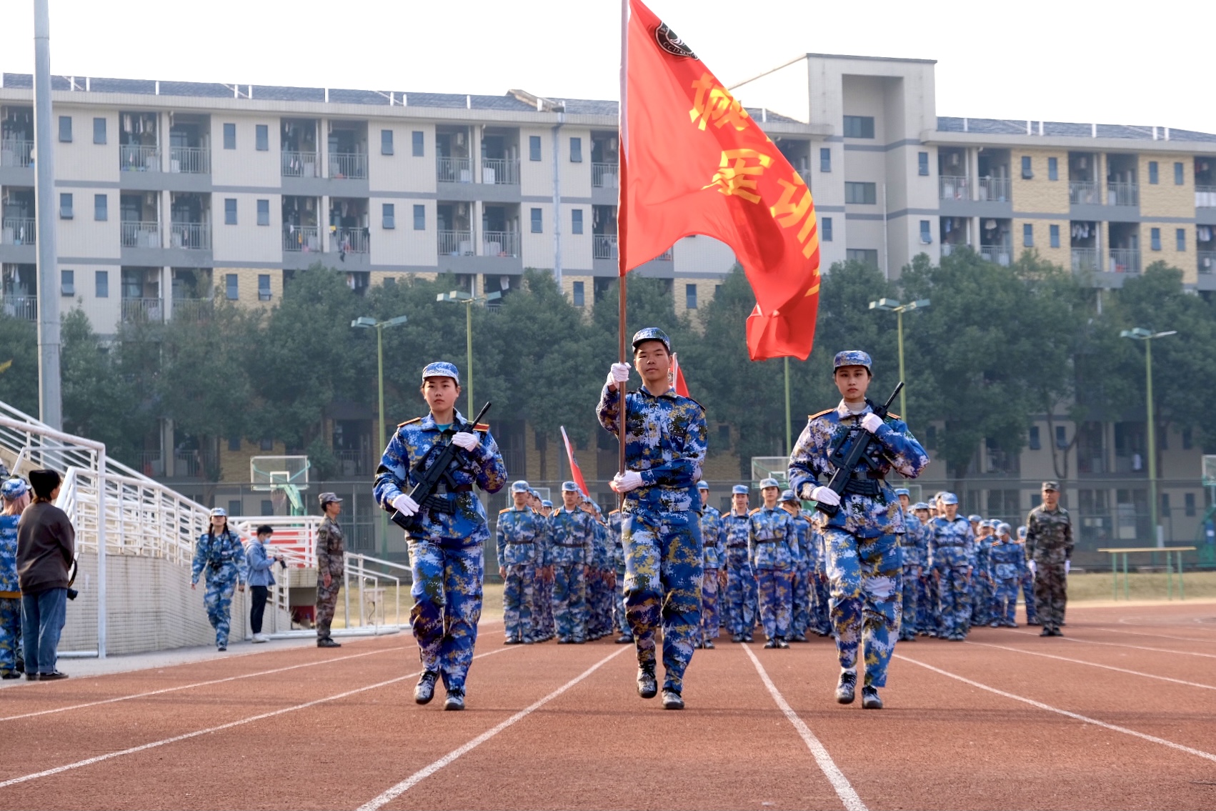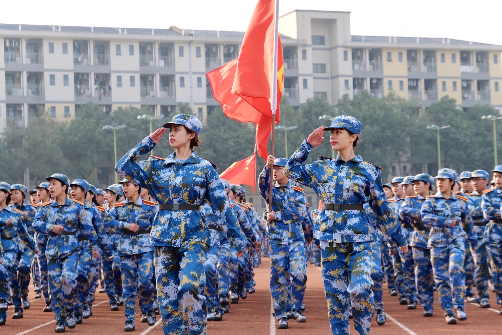 在激昂的国歌声中,分列式、捕俘刀、应急棍术、单兵战术基本操作综合演练和各方阵连队的同学们迈着矫健的步伐,喊着嘹亮的口号,依次从主席台前走过。整齐划一的方队、激昂嘹亮的口号,展现了新时代大学生的昂扬风貌,彰显出城院学子的青春与活力。