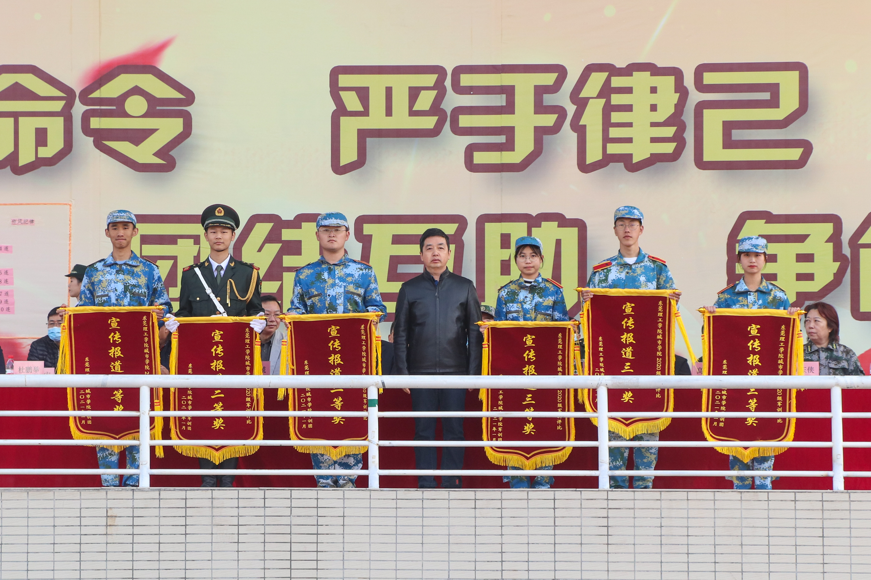 大会还对团体、队列、宣传报道、内务、作风纪律等五个方面对各连队进行了表彰,副校长高香林宣读表彰决定,校领导分别为受表彰集体和个人进行了颁奖。