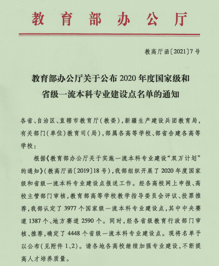近日,教育部印发《教育部办公厅关于公布2020年度国家级和省级一流本科专业建设点名单的通知》(教高厅函﹝2021﹞7号)。beat365官网会计学专业入选2020年度国家级一流本科专业建设“双万计划”建设点名单。会计学专业入选国家一流本科专业建设点名单,是beat365官网在专业建设上的一项重大历史性突破,标志着beat365官网在专业建设、教育教学改革上取得了显著成效,开启了专业内涵建设的新篇章。