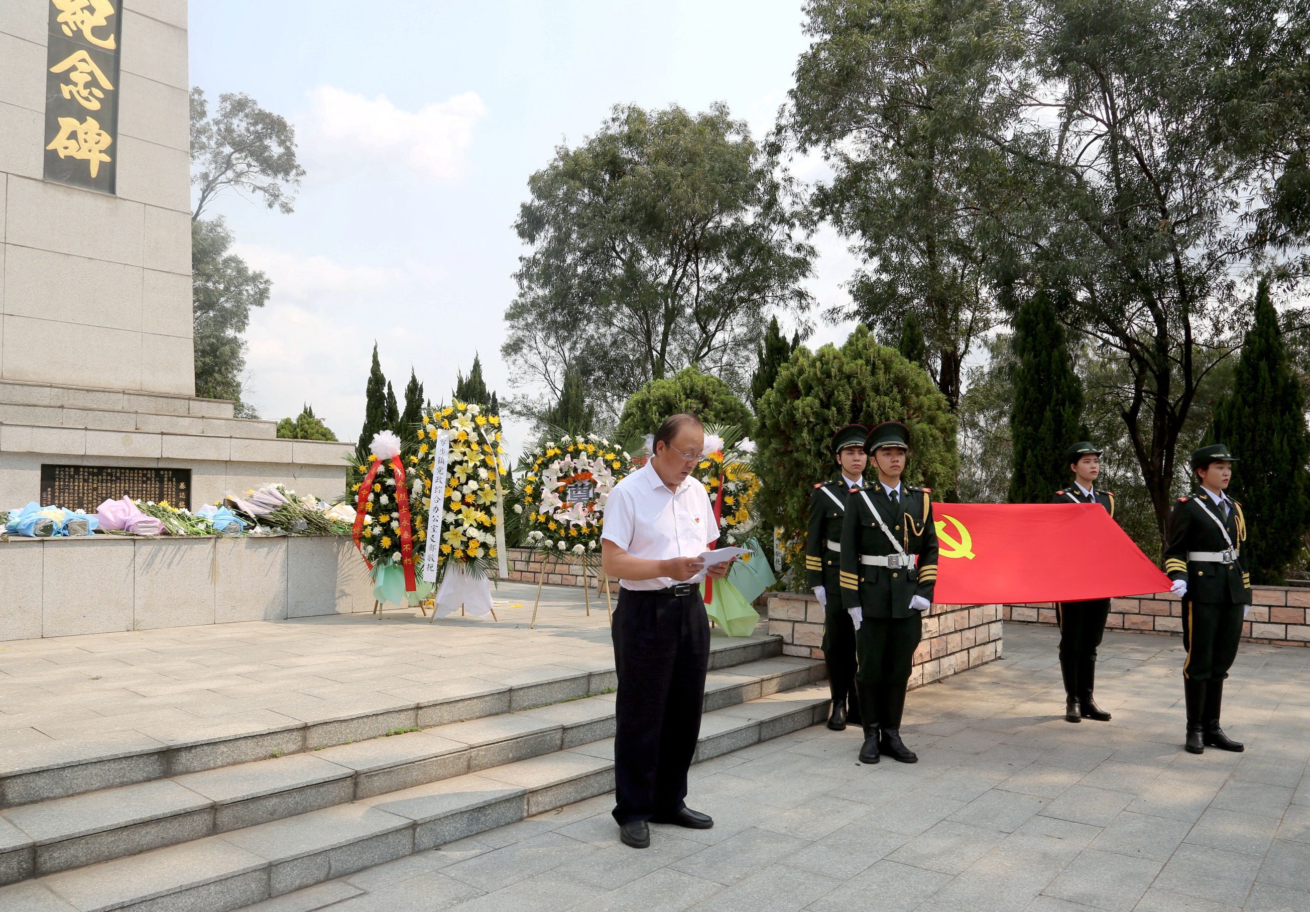 上午10时许,在革命烈士纪念碑前,学校党委书记、党史学习教育领导小组组长章德胜回顾了东江纵队烈士的英勇事迹,强调瞻仰烈士纪念碑、祭扫先烈,既是为了珍视历史,更是为了继承先烈的遗志,团结一心、与时俱进,以饱满的精神、出色的工作和优异的成绩,来告慰革命先烈在天之灵。