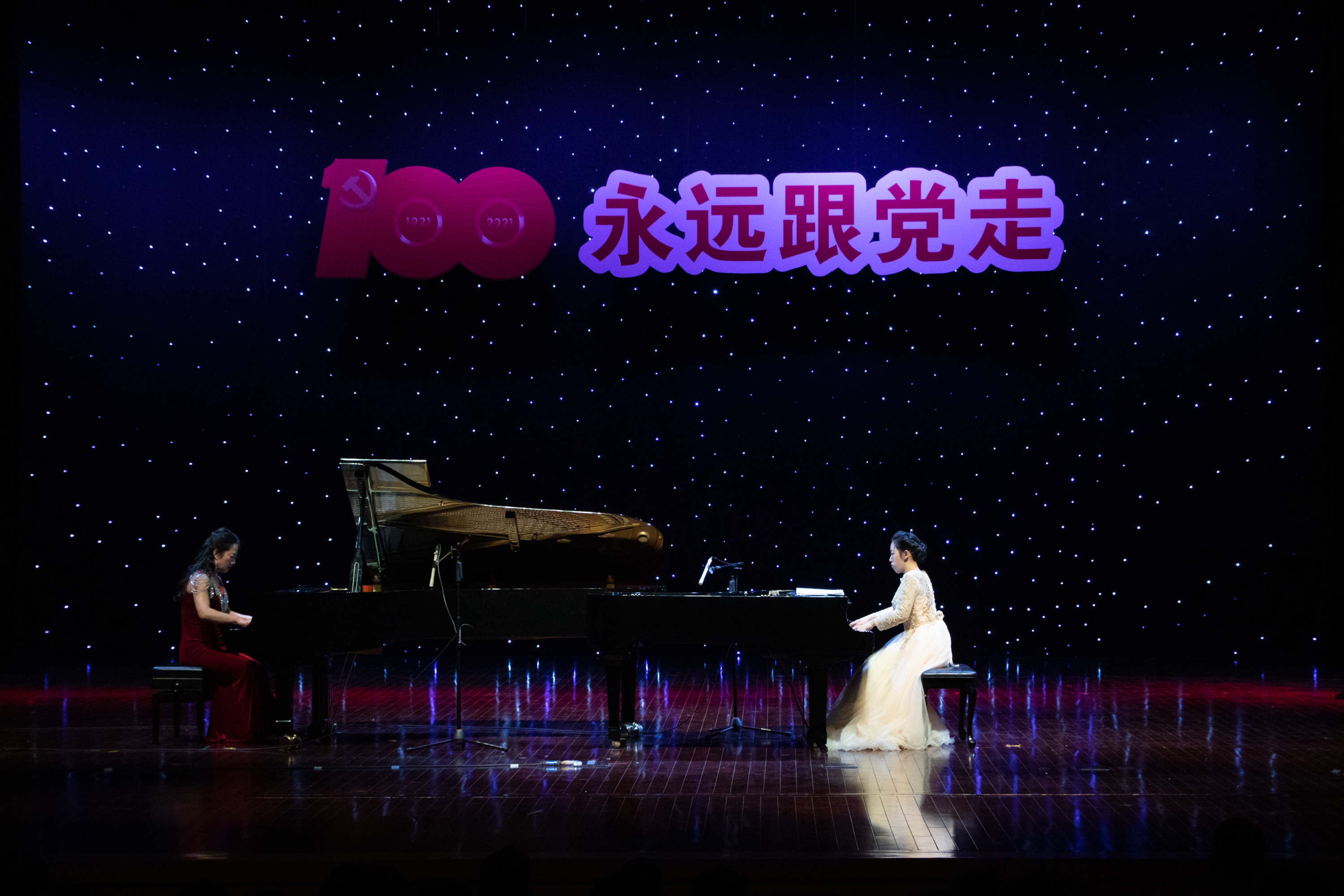艺术学院一直秉承着教学与实践相结合的形式,院领导和专业负责人不断尝试走出教室,走上舞台,通过舞台实践来缩短课堂与舞台之间的距离,提高学生的综合素质,向社会展示教学成果。在建党百年华诞之际,艺术学院师生们用歌声表达对党的祝福,用舞姿跳出对美好生活的向往。通过最经典、最优秀的文艺作品,弘扬主旋律,凝聚正能量,唱出浓浓的爱党情、爱国情,向建党百年献礼。