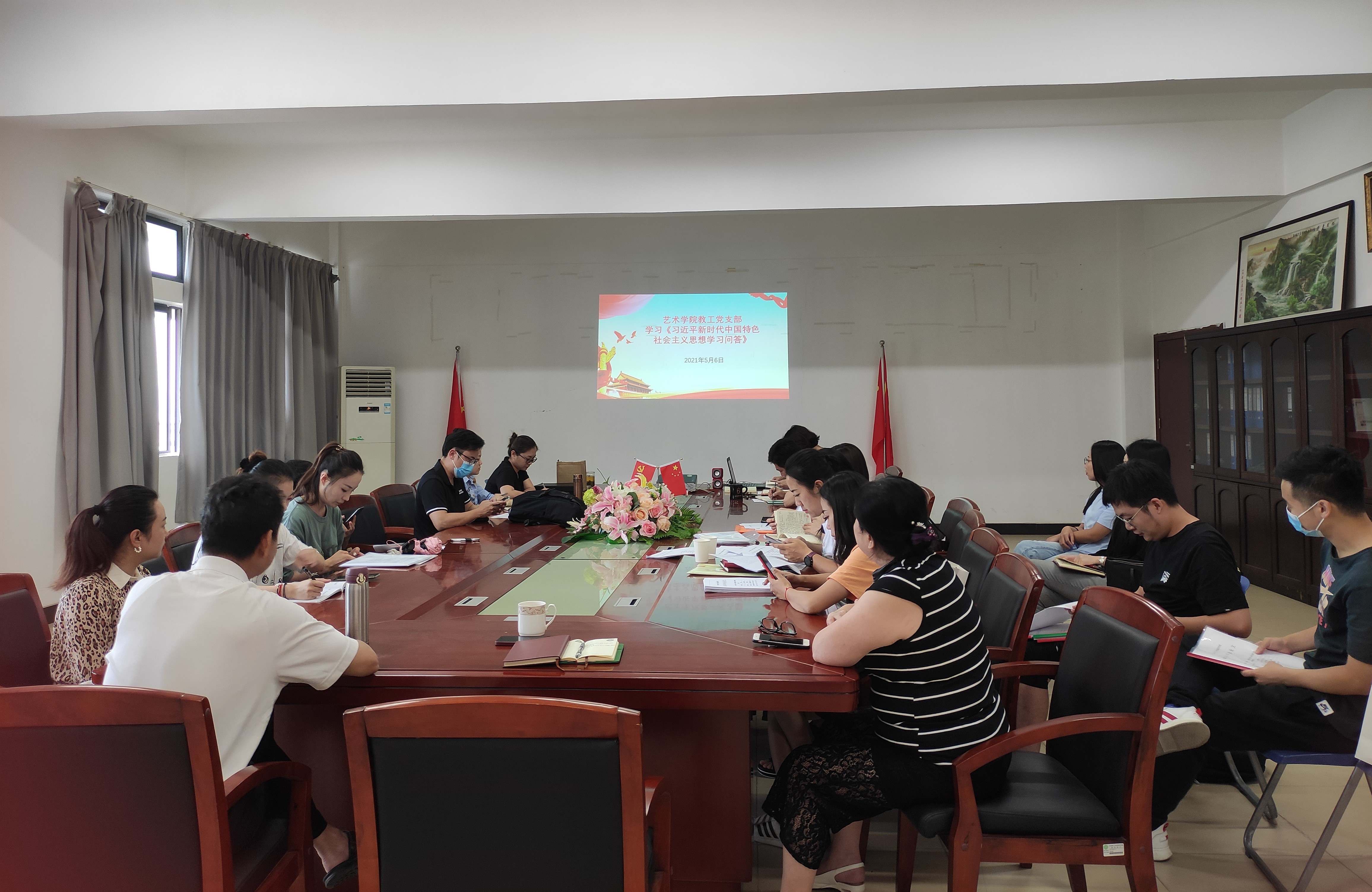 5月6日下午,艺术学院教工党支部在5C419会议室召开了党员大会,集中学习《习近平新时代中国特色社会主义思想学习问答》。