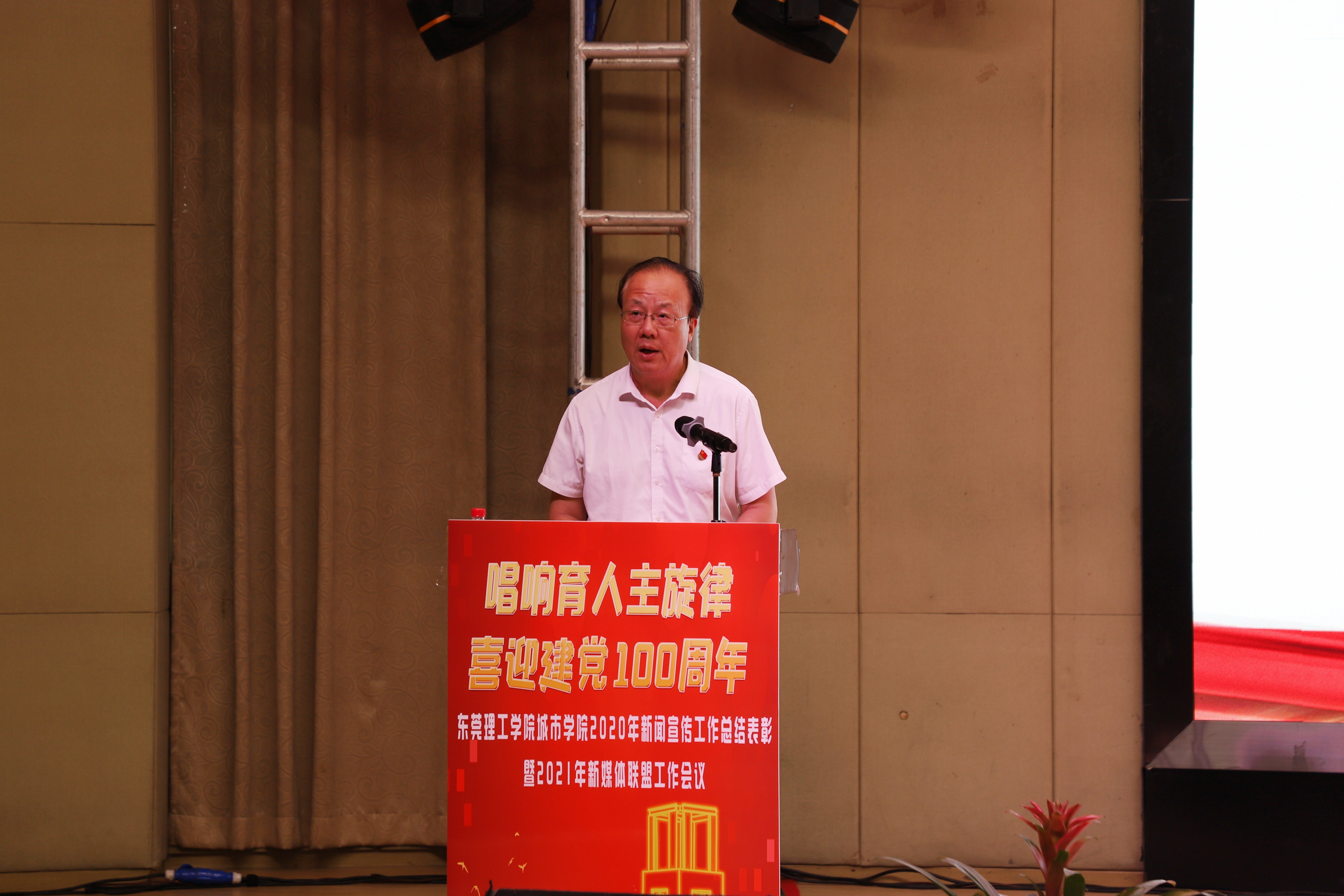 为全面贯彻习近平总书记关于党的宣传思想工作重要论述精神和落实党中央关于宣传思想工作重要部署,以习近平新时代中国特色社会主义思想为指引,紧紧围绕学校内涵式发展战略,讲好党的故事、讲好城院故事,总结学校2020年度新闻宣传工作,表彰先进典型,促进学院新闻宣传工作进一步发展, 5月12日下午,在beat365官网学术报告厅举行了“‘唱响育人主旋律 ,喜迎建党100周年’东莞理工学院2020年度新闻宣传工作表彰暨2021年新媒体联盟工作会议”。中国网品牌东莞总编辑刘献兵、副总编辑赵洋,学校党委书记章德胜,副书记高香林、黄兢,党委委员刘玉侠、孔增强、杜鹏举、卢淑芳等领导出席了会议。各二级单位负责人、党总支副书记;新闻舆情联络员、大学生融媒体中心学生代表、各学院新闻宣传学生代表等共300多人参加了会议。党委宣传部副部长苗琳主持了大会。