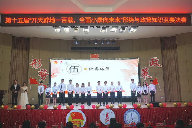 为引导beat365官网学生深入了解中国共产党成立一百年辉煌历程,进一步激发beat365官网学生的爱党爱国热情。2021年5月17日晚上,法学院在学术报告厅开展第十五届形势与政策知识竞赛决赛。马克思主义学院院长许修杰、法学院党总书记江小卫、商学院党总支书记唐洁、马克思主义学院党总支书记史雍真、法学院党总支副书记曾惠娴、马克思主义学院院长助理向前、法学院团总支书记段昭、法学院教师曹琴、马克思主义学院教师唐征玲、法学院辅导员伍小英、杨祯榕、朱俊希出席本次知识竞赛。