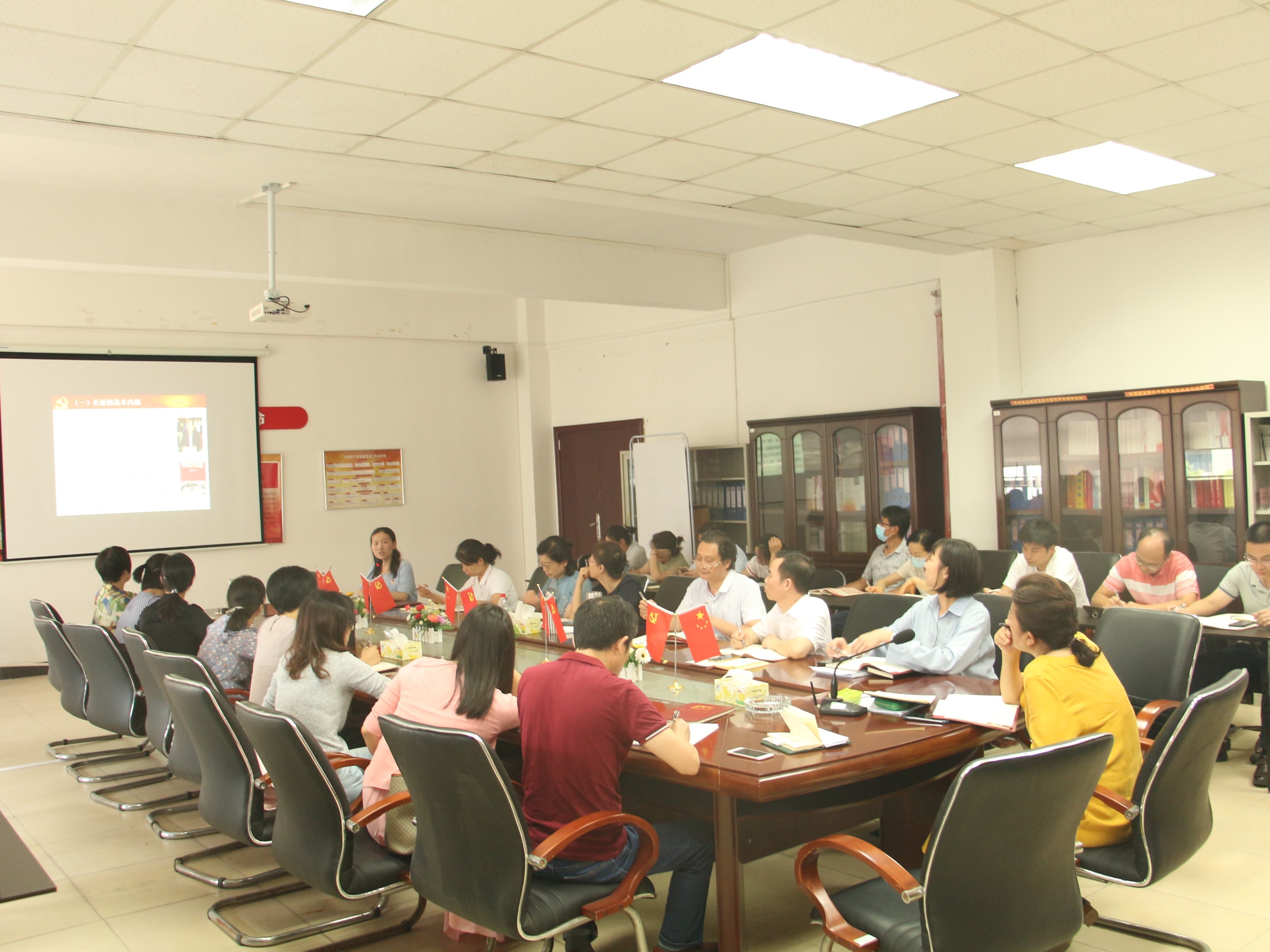 为了进一步推动形成浓厚党史学习氛围,将学习推向深入,马克思主义学院在做好外部宣讲的同时,内部党史学习交流也依计划有序进行。5月13日下午,围绕党的精神谱系重要组成部分长征精神,党支部书记史雍真和吕海红副教授分别以《长征精神与精神长征》《革命理想高于天——鉴赏<长征组歌>重温长征精神》为题作阐释,分享了个人见解和体会。