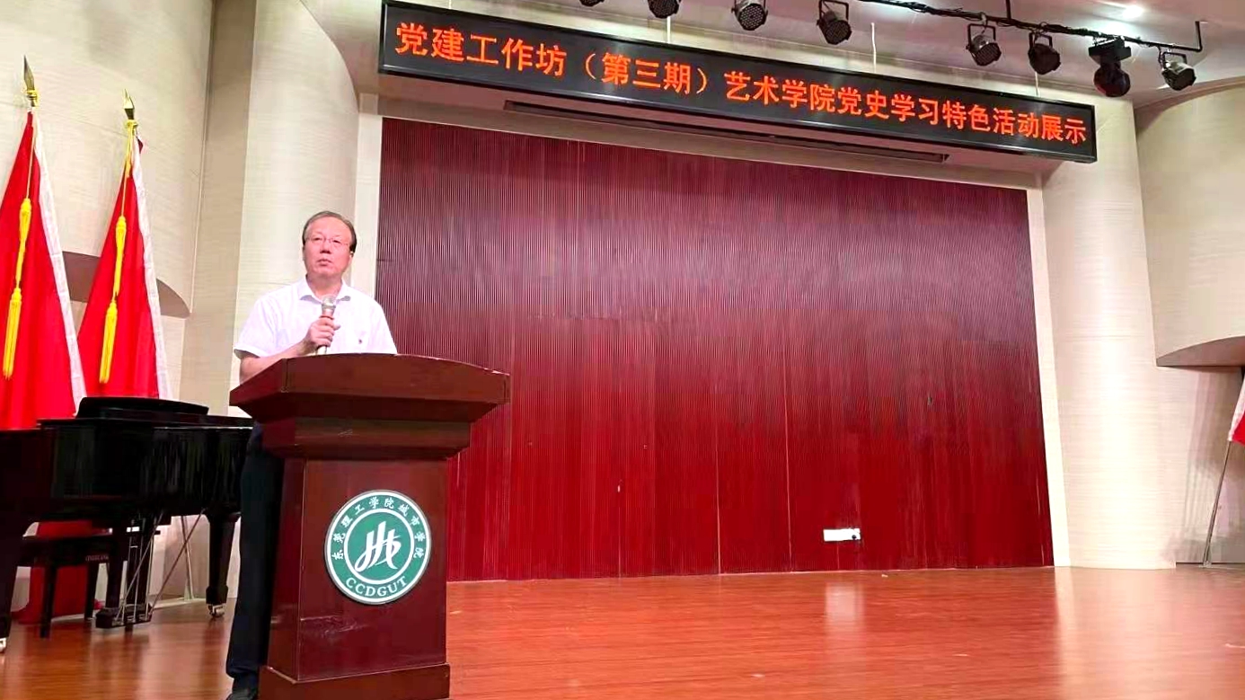 章德胜书记指出,党建工作坊旨在交流分享基层党建工作典型的经验做法,推动基层党建“活起来、实起来、强起来”。本次特色党史学习活动的展示使得党史可听可唱,可感可思,是实现“课程思政”目的的一次精彩实践。他充分肯定了艺术学院本学期开展的一系列党史教育特色活动,并鼓励各个学院要依据自身学院特色,积极打造出具有创新性、针对性与吸引性的党史教育学习,创新学校党史学习教育,扎实推进学校党建工作上水平创特色。