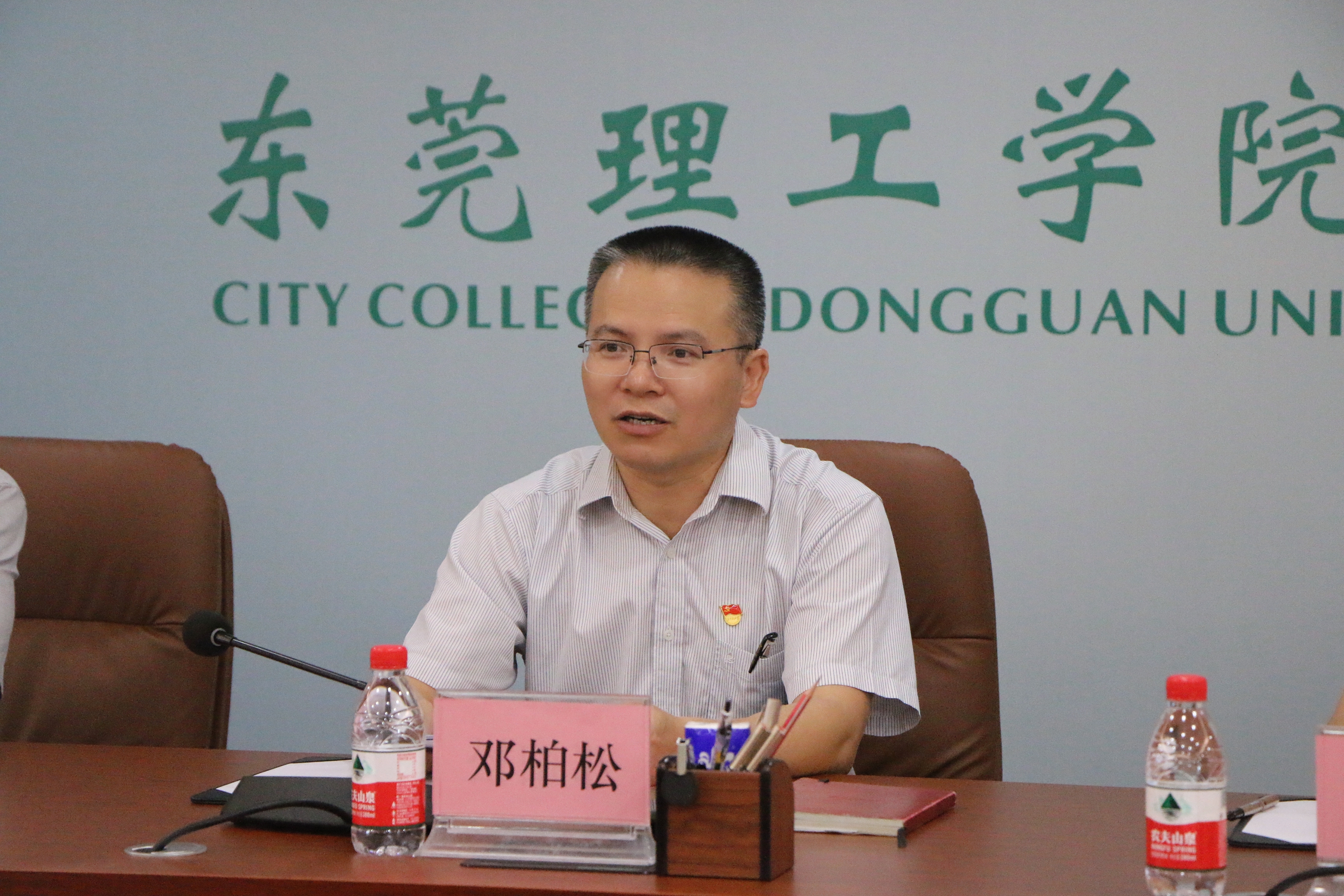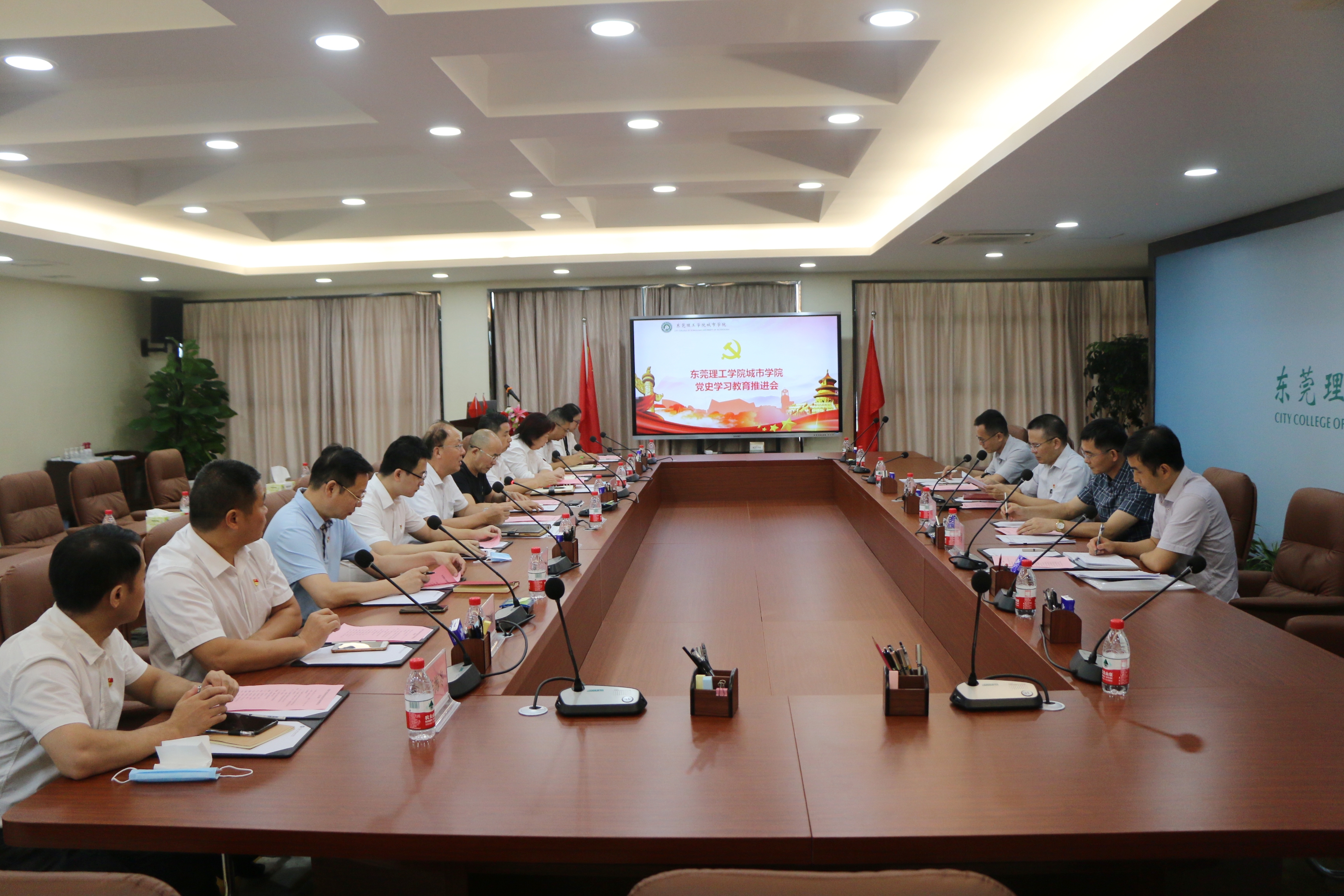 7月9日下午,东莞市委教育工委巡回指导组高校巡回指导第三组组长邓柏松,组员戚锐麟、叶德荣,联络员侯典国莅临beat365官网调研指导党史学习教育开展情况。学校董事会董事长代表陈超群,校党委章德胜、王卫平、高香林、黄兢、刘玉侠、杜鹏举、孔增强、李海冬、卢淑芳等领导出席了会议。会议由党委副书记、校长王卫平主持。