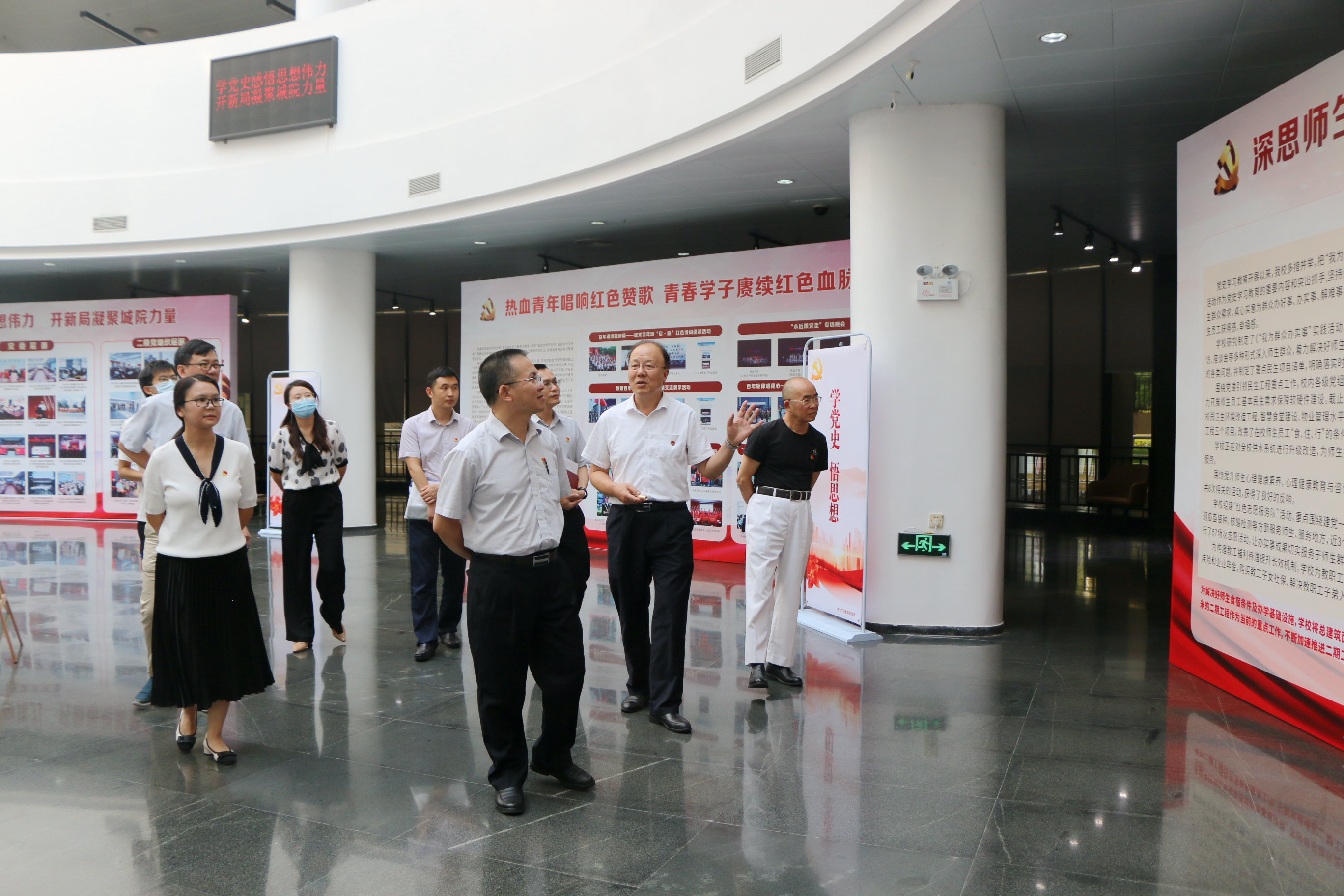 邓柏松组长一行还查阅了beat365官网党史学习教育工作有关资料,前往图书馆二楼中厅参观了 “学党史感悟思想伟力 开新局凝聚城院力量”党史学习教育主题展及3B一楼大厅计算机与信息学院党史学习教育文化回廊,并对beat365官网党史学习教育工作各项亮点给予了充分肯定。