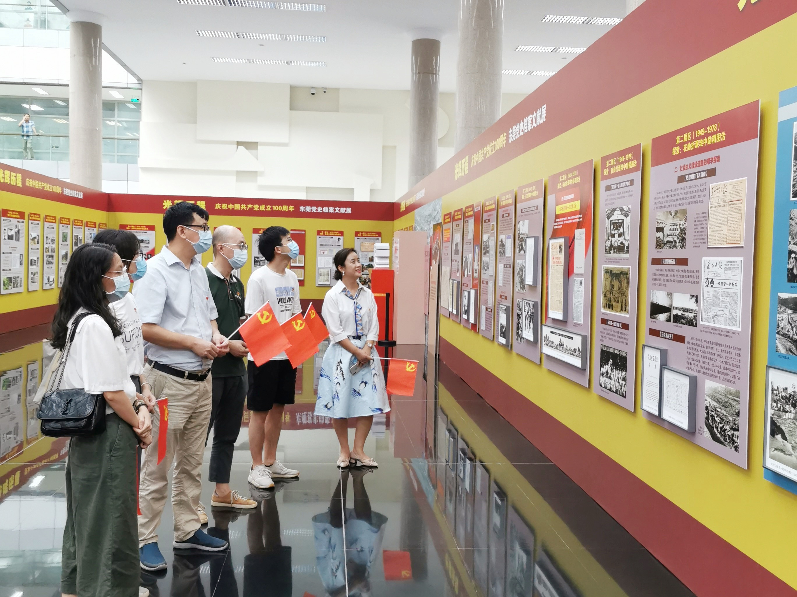据介绍,此次展览由中共东莞市委办公室、中共东莞市委组织部、中共东莞市委宣传部、中共东莞市委党史研究室、东莞市档案馆联合主办。展览由“燎原、探索、变革、筑梦”四个部分组成,展线长300米,通过230余块展板,近900幅珍贵历史图片、精品档案、重要文献,串联起东莞党史百年记忆。
