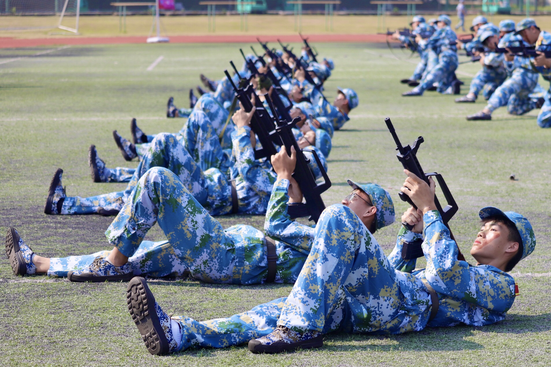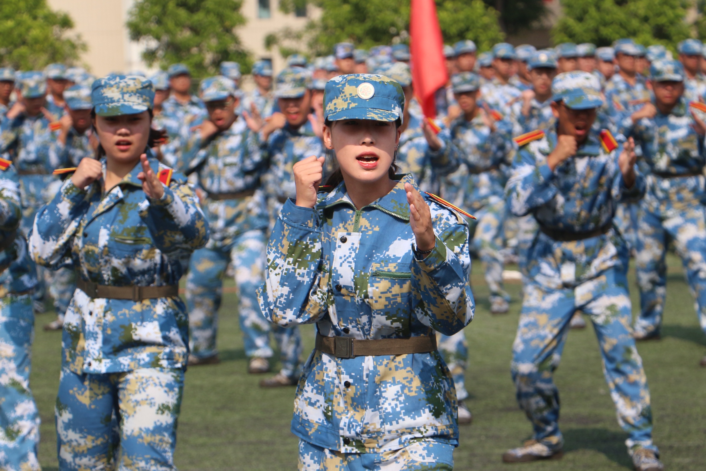 在激昂的军歌节奏中,各方阵连队的同学们迈着矫健的步伐,喊着嘹亮的口号,依次从主席台前走过。他们步伐有力、意气风发,展示着为期半个月的军训成果,接受着领导和师生的检阅。整齐划一的方队、激昂嘹亮的口号,展现了新时代大学生的昂扬风貌,彰显出城院学子的青春与活力。