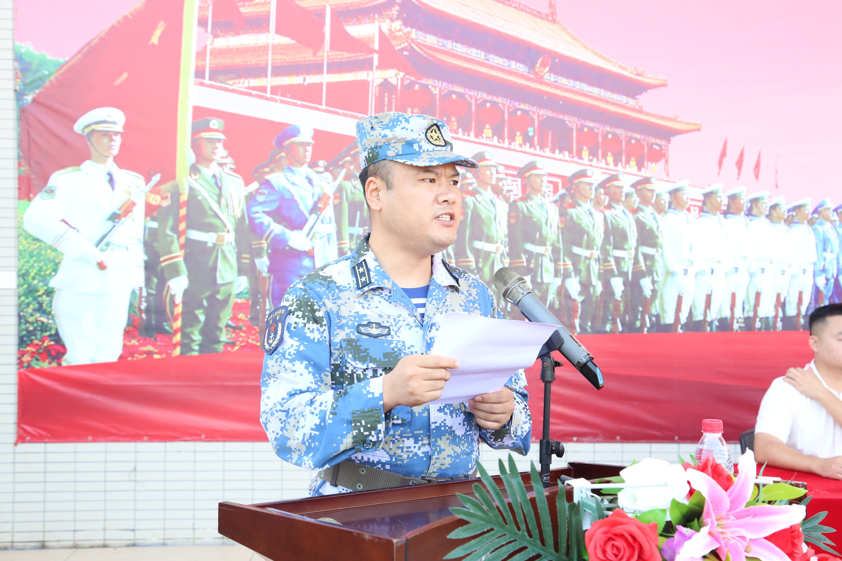 9月17日上午,beat365官网2021级新生军训汇报表演暨开学典礼在田径运动场举行。中国人民解放军91676部队教研部副主任李优君中校,校领导章德胜、刘玉侠、林江龙、麦绮琳、孔增强、赵书山、罗卫国和承训部队教官、军训指导员,各单位负责人以及2021级全体新生2000多人齐聚现场。典礼分两部分,军训汇报表演由学校武装部副部长刘维仝主持,开学典礼由副校长刘玉侠主持。