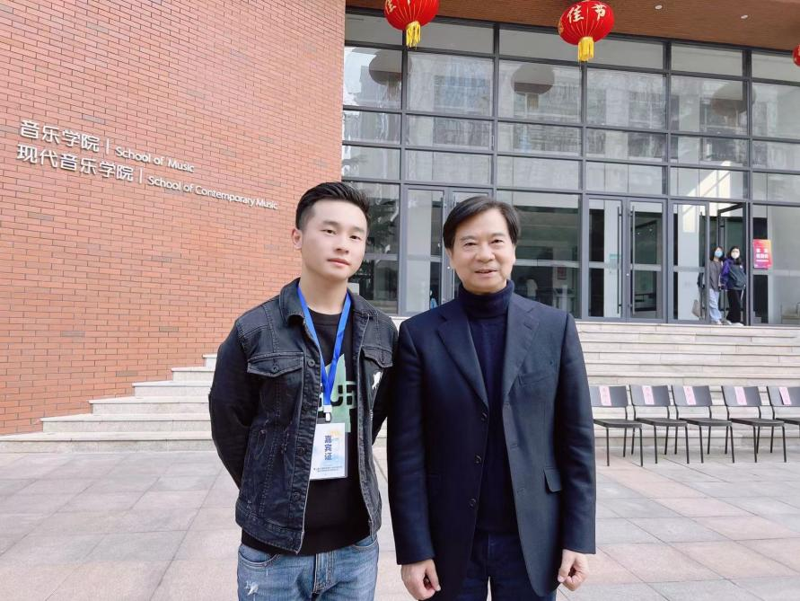 (张雪锋老师与著名音乐学家、音乐批评家、南京艺术学院退休教授居其宏教授合影)