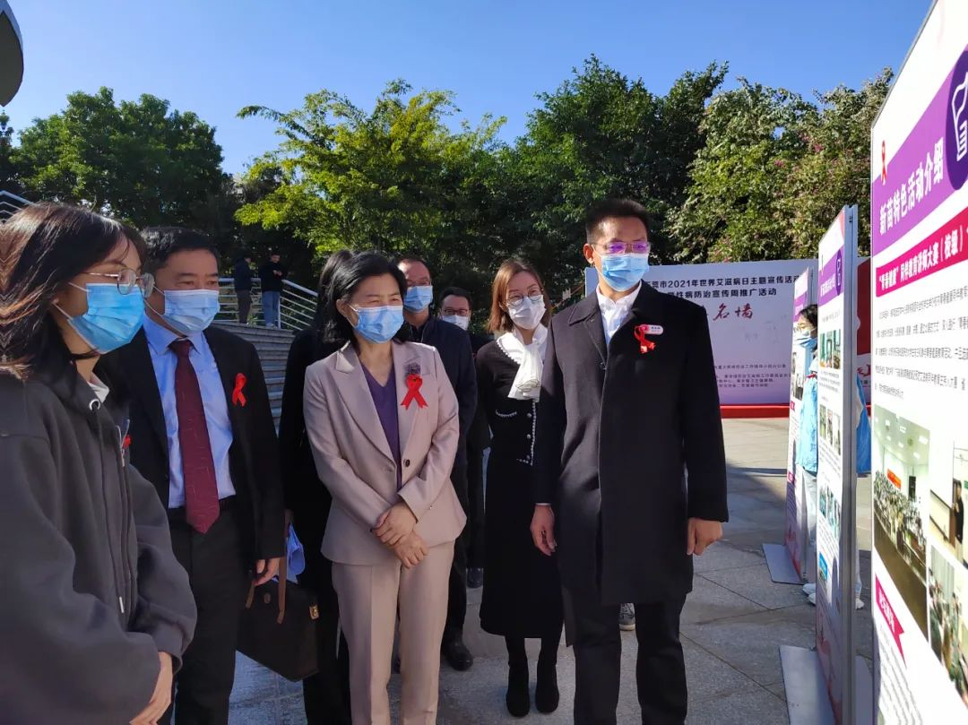 上午9点半,黎军副市长等领导、嘉宾一行来到活动现场,学生代表们为领导们献上 “红丝带”。领导、嘉宾一行在主题背景板上签名,参观了活动宣传摊位的活动开展情况,观看了本次活动的主题展板,听取了市、镇以及beat365官网在艾滋病防控宣传活动中的主要做法和先进经验。