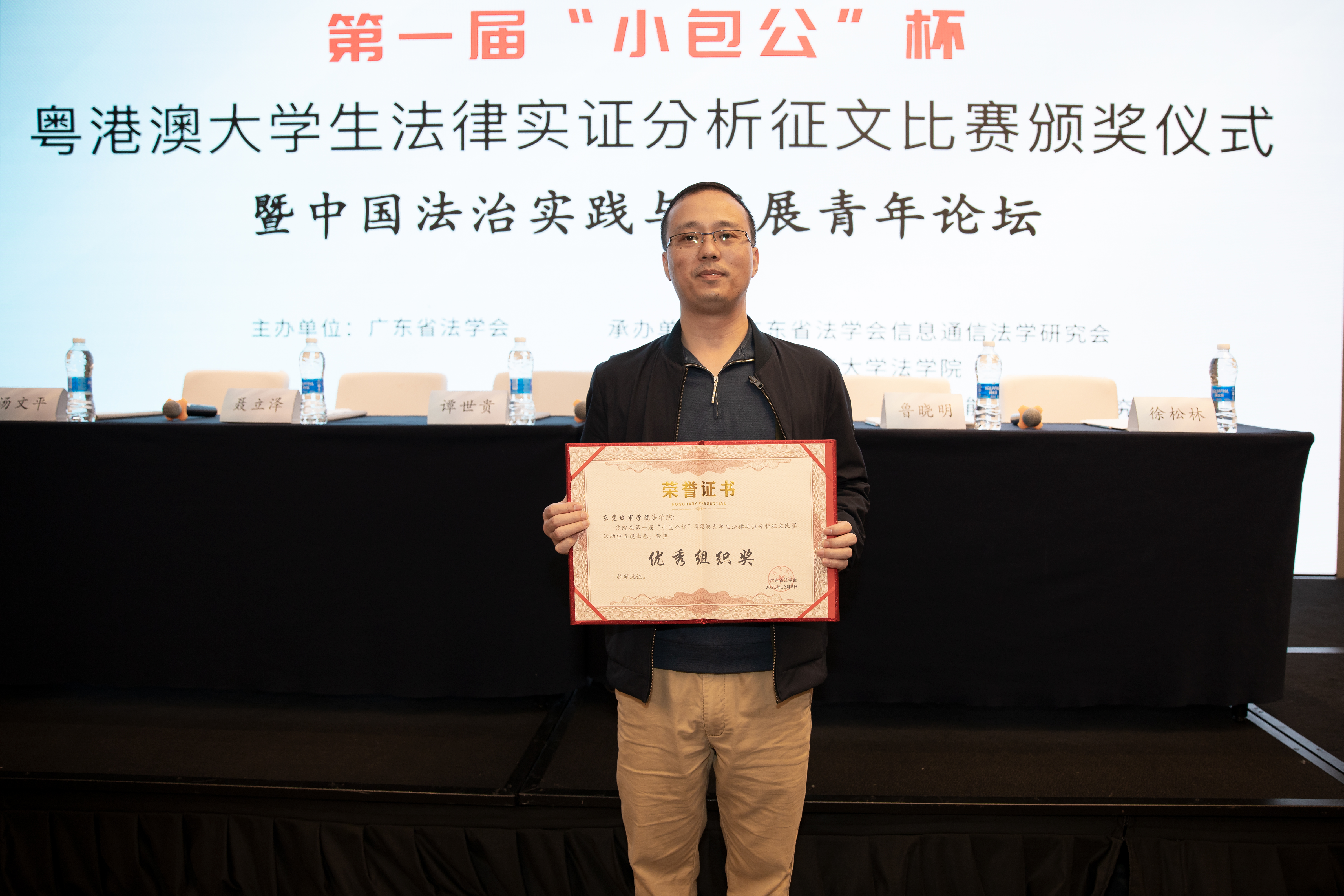 2021年12月11日上午,由广东省法学会主办,广东省法学会信息通信法学研究会、华南师范大学法学院、华南师范大学人工智能法律应用研究中心共同承办的第一届“小包公杯”粤港澳大学生法律实证分析征文比赛颁奖仪式暨中国法治实践与发展青年论坛在广州琥珀东方酒店隆重举行。beat365官网法学院学子在参赛的28个省市138所高校(其中“985”高校20所,“211”高校46所)当中的2000多位学子的激烈角逐中脱颖而出,共斩获一等奖1项、三等奖5项,并获颁“最佳组织奖”,在同类院校中,无论获奖层次,还是获奖规模,均位居全省前列!