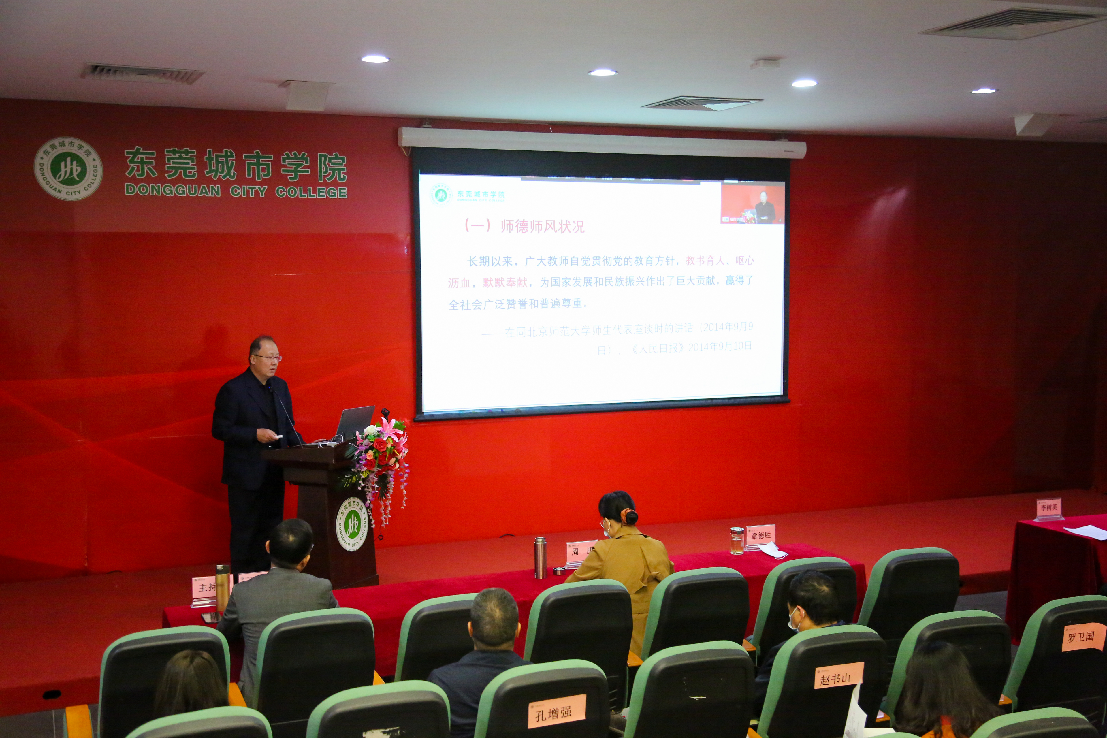 党委书记章德胜以“学习践行新时代高校师德规范”为题,从习近平总书记关于师德师风的论述,践行新时代高校教师职业行为十项准则,beat365官网师德师风建设三个方面作了报告。章德胜书记指出,党的十八大以来,以习近平同志为核心的党中央高度重视教育工作,高度重视教师工作,将教师队伍建设特别是师德师风建设提到了一个新的战略高度,多次在讲话中谈到师德师风的重要意义。章德胜书记从教师的价值维度、角色维度、对教师的要求维度分析了加强师德师风建设的原因。关于建设什么样的师德师风,章德胜书记指出要从理想信念、道德情操、扎实学识、仁爱之心、改革创新,终身学习的共性内容和教师“六要”的个性内容为主体的师德师风建设,并提出教育培养,教师自我修养、见贤思齐和科学评价的师德师风建设途径。