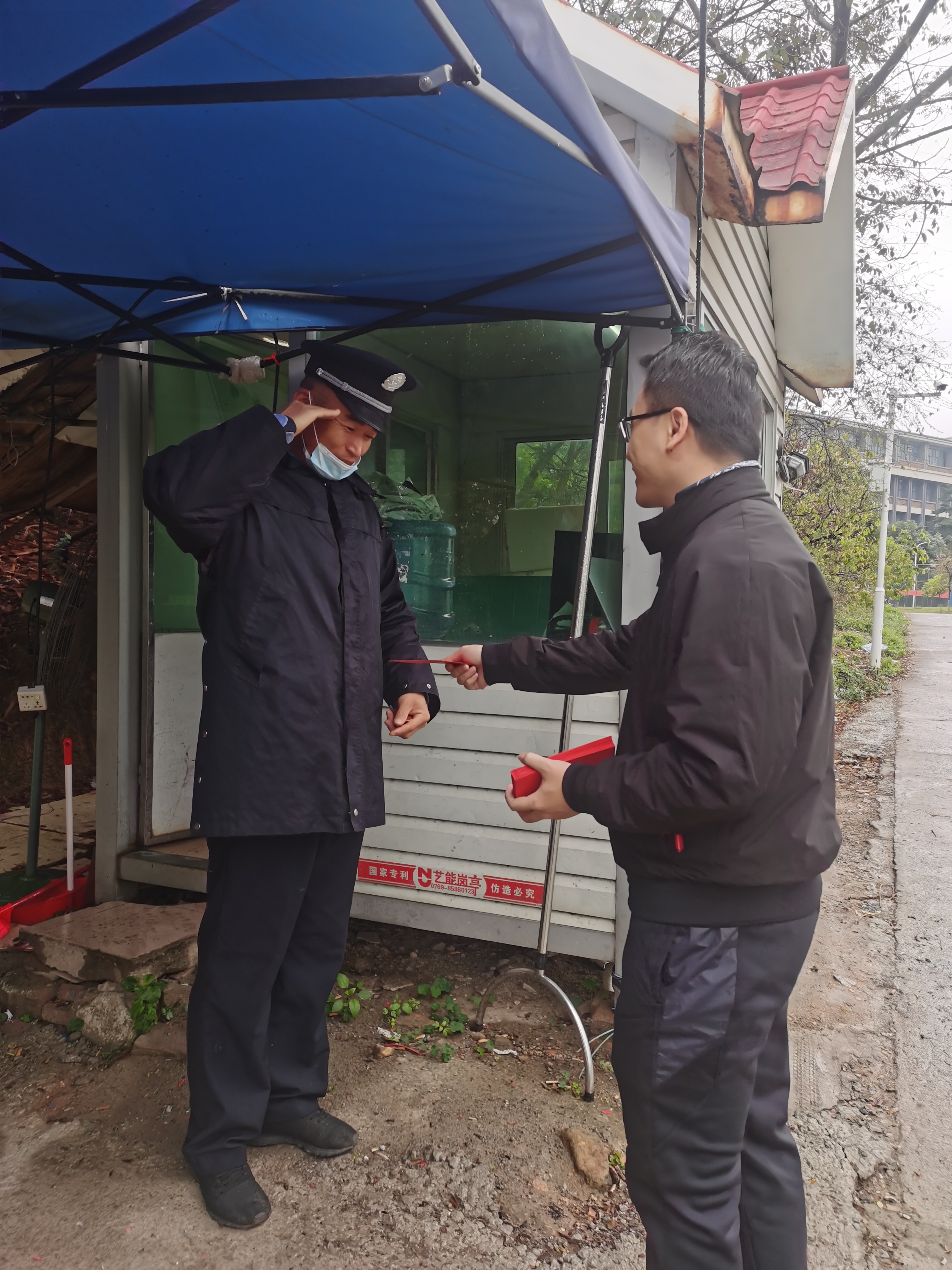领导们一行先后到后勤员工的值班室,与在岗员工亲切交谈,深入了解节日工作情况,感谢他们的辛勤付出,并致以新春佳节的美好祝愿,以及为在岗员工派发了新年红包。同时,叮嘱他们要将“安全”与“疫情防控”作为假期校园工作重点,以高度的责任感,全力营造安全健康和谐的校园环境,为春季师生返校筑起扎实的防御城墙。