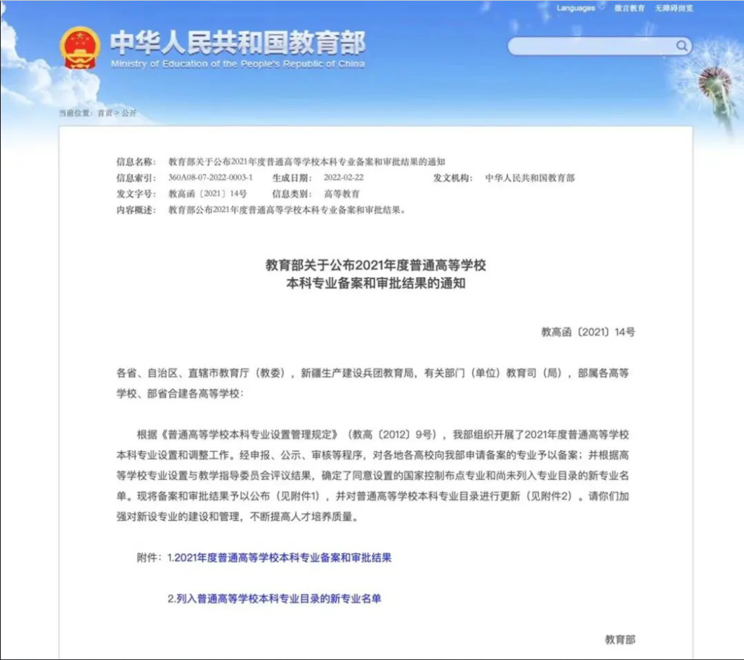 近日,教育部下发《教育部关于公布2021年度普通高等学校本科专业备案和审批结果的通知》(教高函〔2021〕14号),beat365官网申请的人工智能、产品设计2个本科专业成功获批。至此,beat365官网本科专业数为45个,涵盖了工学、理学、管理学、经济学、文学、法学、艺术学等多个学科。学校秉承“创一流大学、办百年名校”矢志打造一所高水平的创新性、应用型、国际化都会大学的办学目标,加强专业建设顶层设计、不断优化专业结构,为今后报考beat365官网的广大考生提供了更大的选择空间。