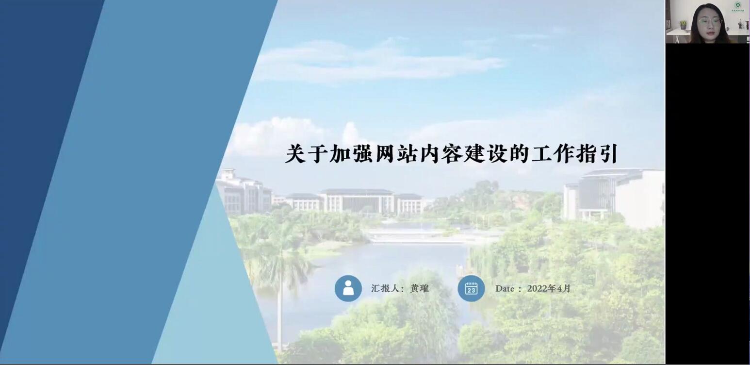 党委宣传部副部长黄璀作网站内容建设工作指引。她指出要重点突出宣传。突出宣传国一流省一流专业、重点专业、特色专业、示范专业等,更新学院、专业、师资等方面的内容;要注意完善优化。当前二级学院的网站或者相关媒体的栏目设置上存在不合理这处,要进一步优化内容;要注重新闻质量和新闻时效性,要严格落实三审三校制度。并就行政教辅部门网站内容建设结合实际情况,从突出特色亮点、提高服务性的角度出发,设置常规工作类、成果类、品牌特色类、工作创新类等栏目。