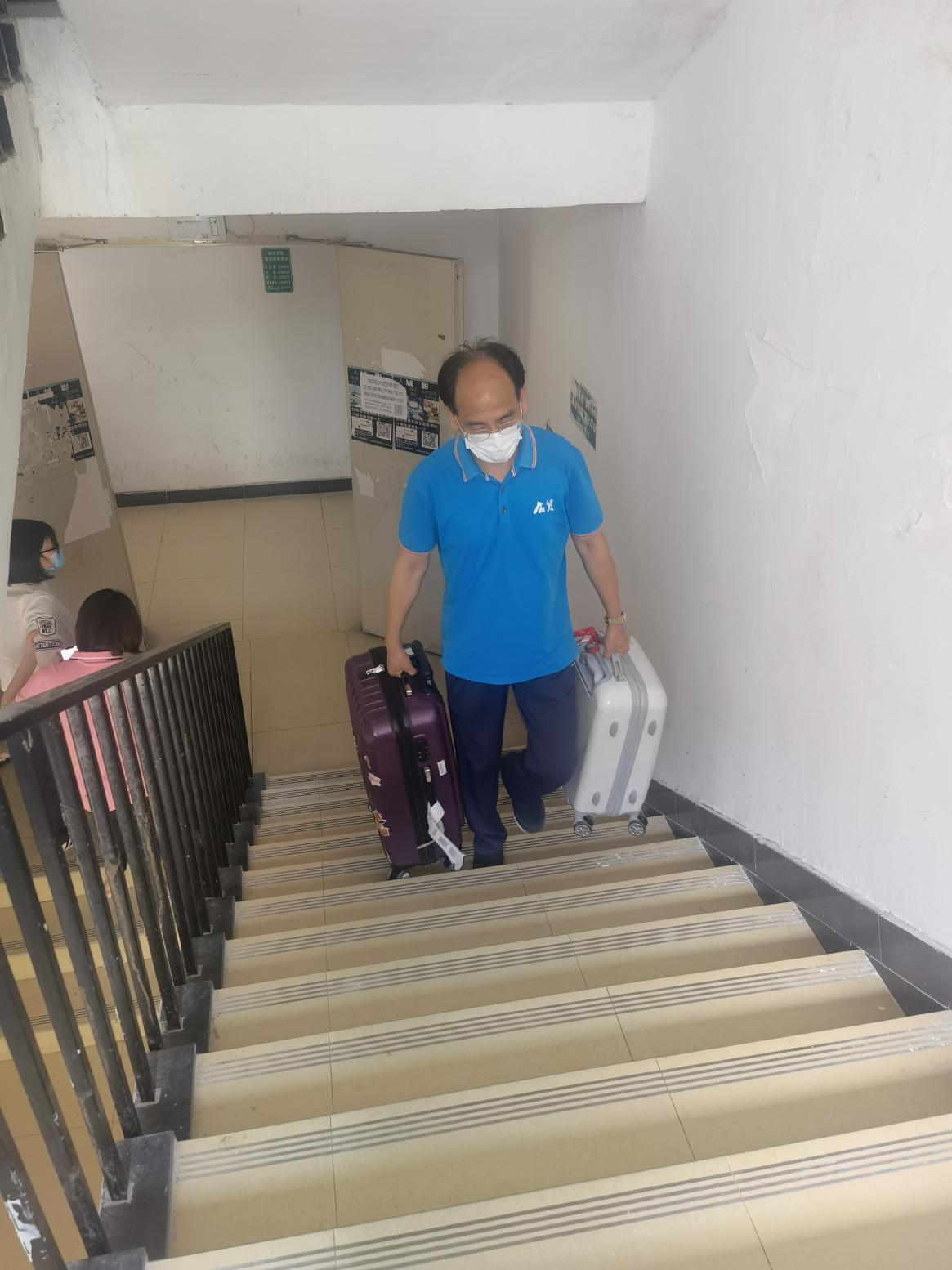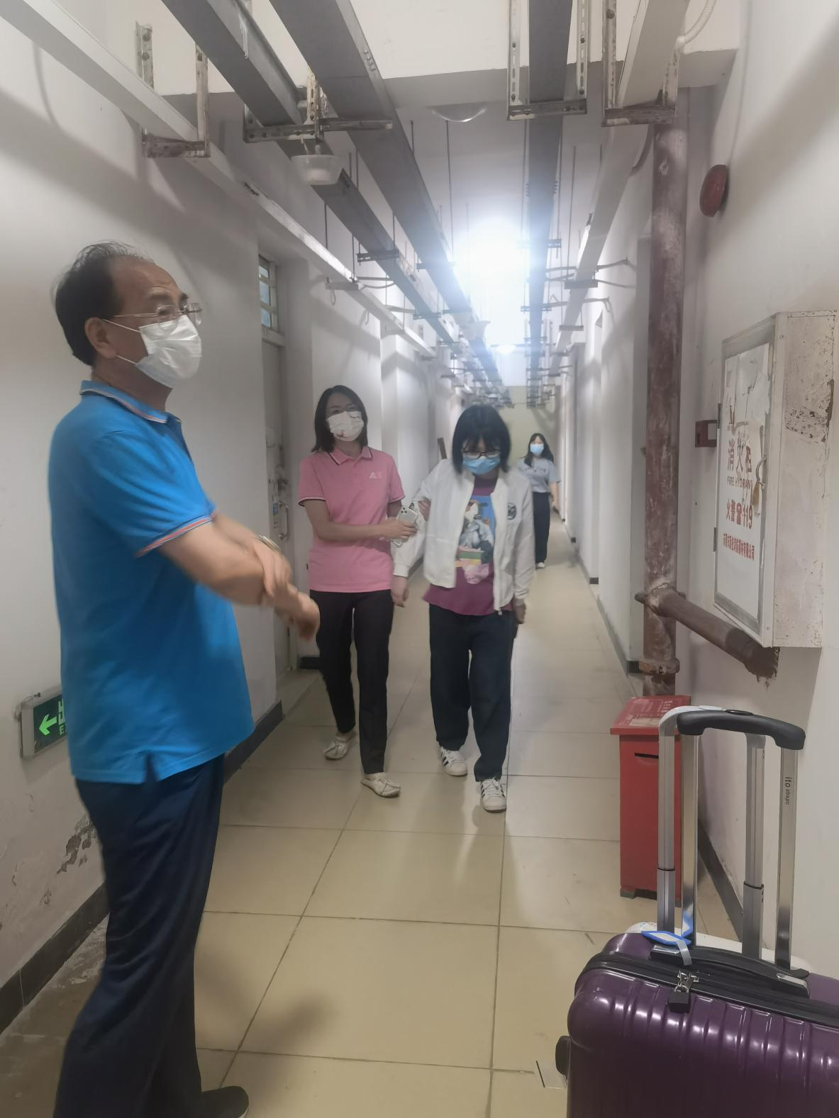 学院领导得知2020级彭同学因2021年新生冬训期间受伤,诊断为右腿陈旧性髌骨脱位,休学一年,于今年复学至2021级,且右腿目前无法正常弯曲。该同学5月5日从江苏省南京市返校,学院全体老师在赖忠孝院长、张兰书记、侯瑞瑞副院长、李晓亮副院长、万文双副书记的带领下,迅速作出反应,主动和学生家长联系,确认学生航班信息、到校时间,亲自在校门口接送孩子、帮助学生核酸排队。开车接送孩子至学6宿舍、帮助彭同学铺好床铺、擦干净桌椅、将其安顿好,并且一一告知家长,让家长安心返回家中。