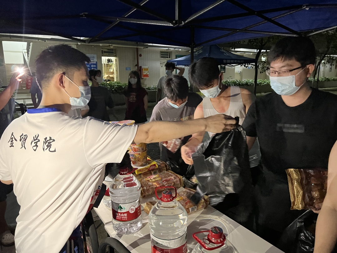 2022年5月9日,在金融与贸易学院党总支的领导和带领下,辅导员余俊老师召集我院2021级的几名同学,一同给隔离同学运送生活物资。