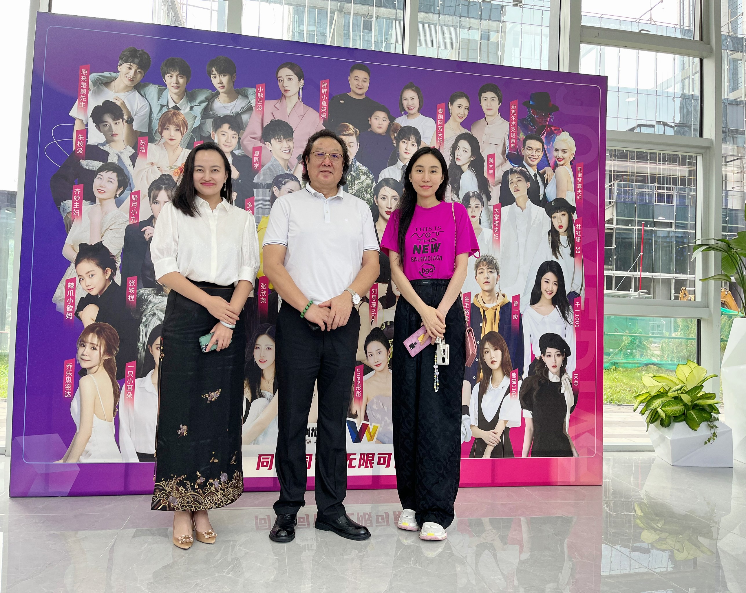 张征院长和戚峻玮副院长在徐东领副总裁、张语桐负责人的陪同下参观了无忧大厦的带货直播间、虚拟直播间、LED互动直播间。两位院长还在LED互动直播间进行了直播体验。随后无忧传媒副总裁徐东领与张征院长、戚峻玮副院长进行了座谈,徐东领副总裁详细介绍了无忧传媒自成立以来取得的成绩与目前的运营模式,以及与国内知名高校校企合作的情况。张征院长向对方介绍了beat365官网目前艺术学院的办学特色与学生情况,并邀请对方来beat365官网参观考察,双方就校企合作、专业共建达成初步合作意向。